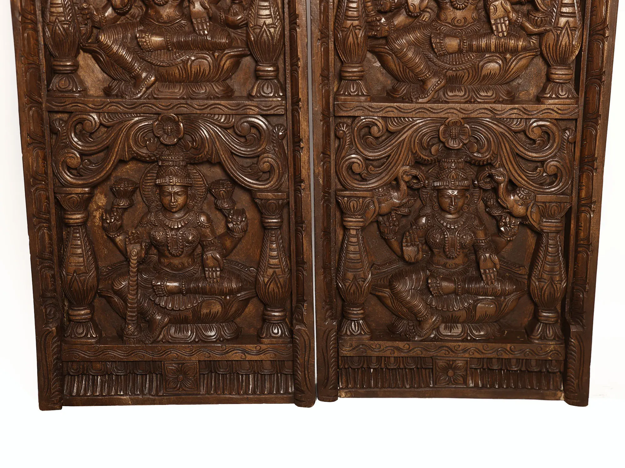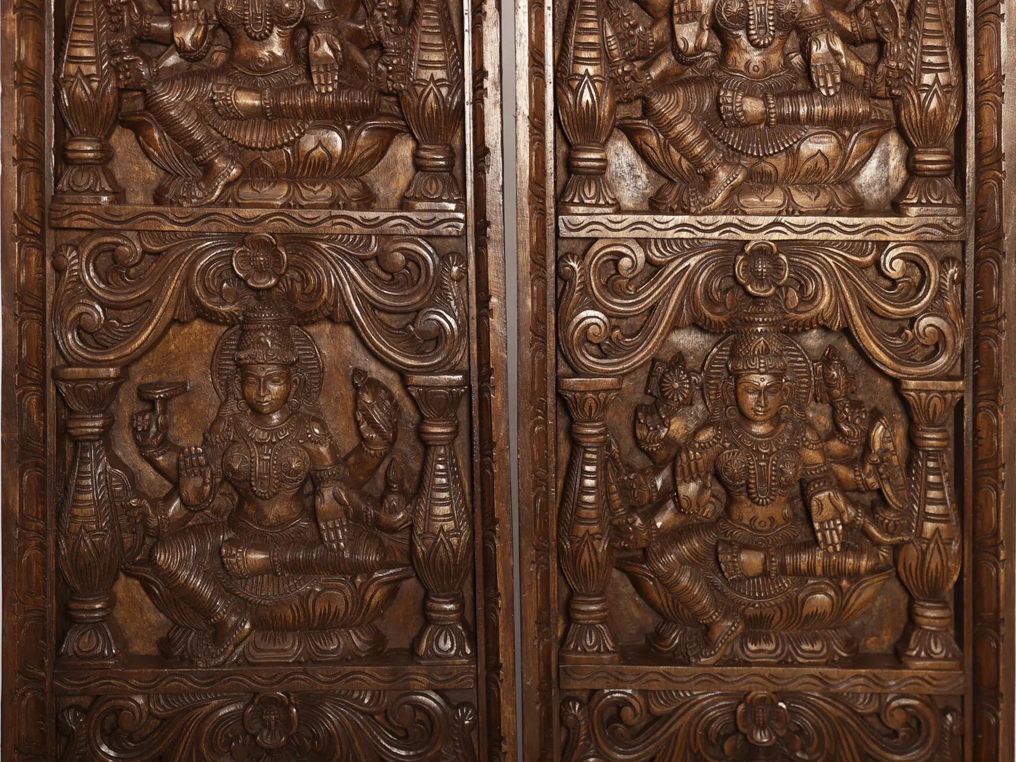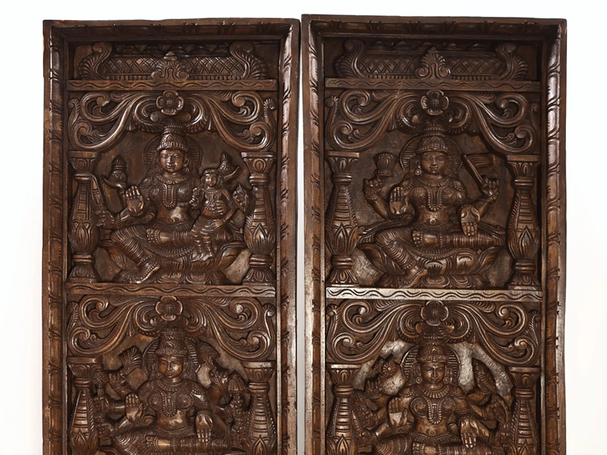 These panels are more than just a decorative item; they are a connection to a rich cultural heritage. Wood carving has been an integral part of Indian artistic expression for centuries, with each piece telling a story and carrying the blessings of the artisans who crafted it. The choice of wood itself is significant, often chosen for its durability and aesthetic qualities, adding to the longevity and heirloom potential of this artwork. The sheer scale and detail of this carving suggest a considerable investment of time and dedication, transforming raw material into a sacred masterpiece. This piece serves as a beautiful reminder of the power of devotion and the pursuit of a balanced and prosperous life, echoing the ancient tales of goddesses who have inspired countless generations.