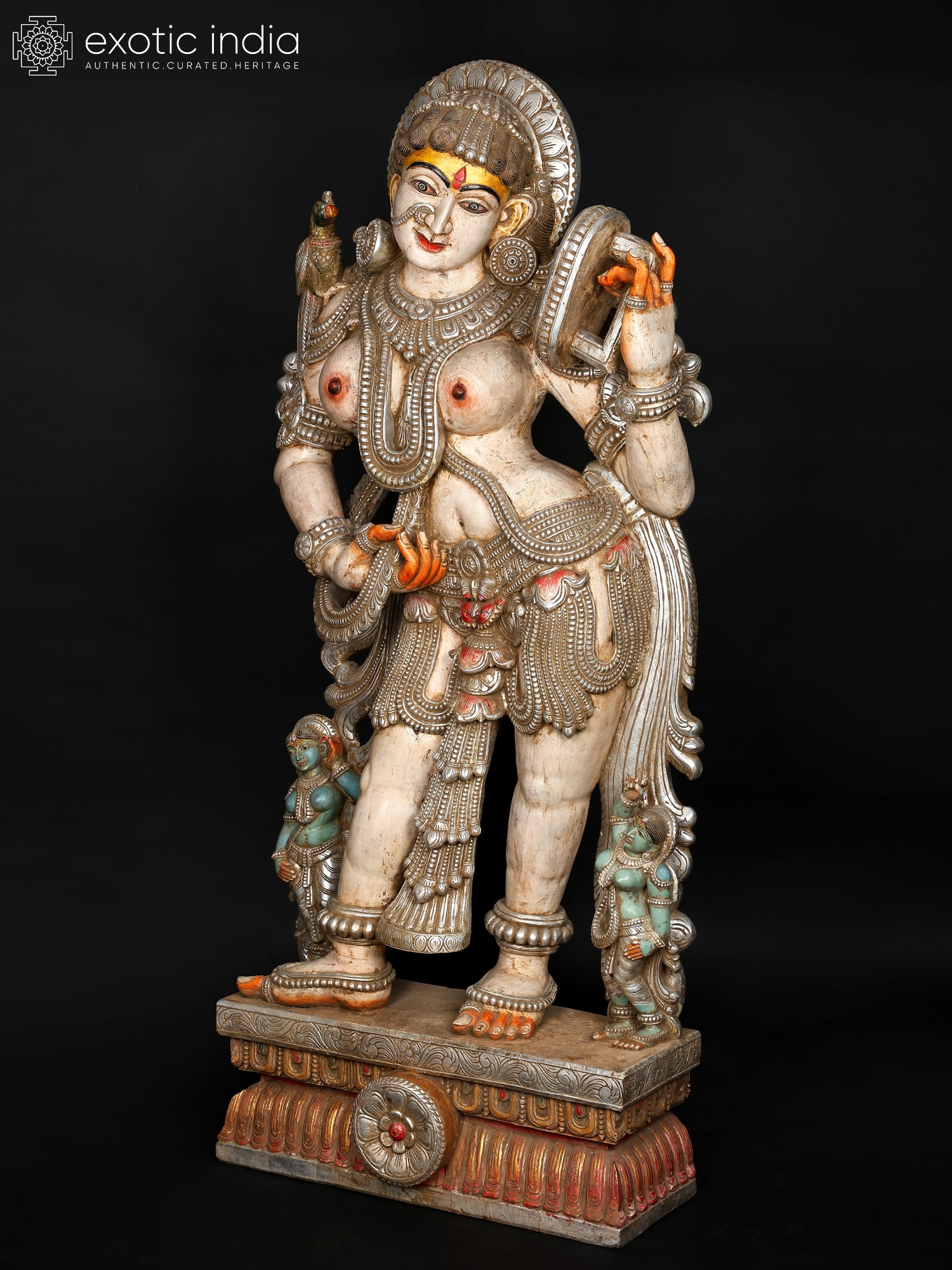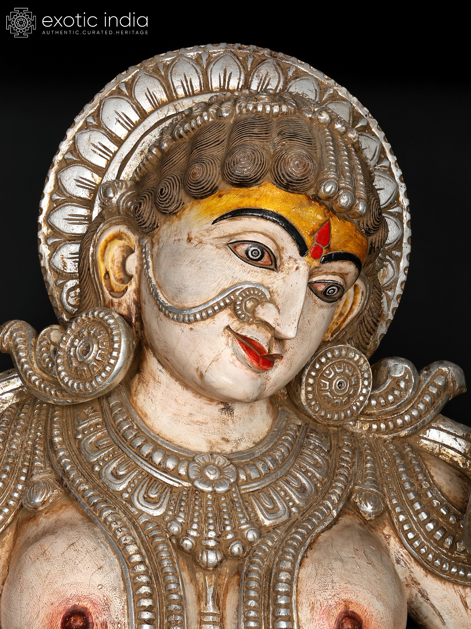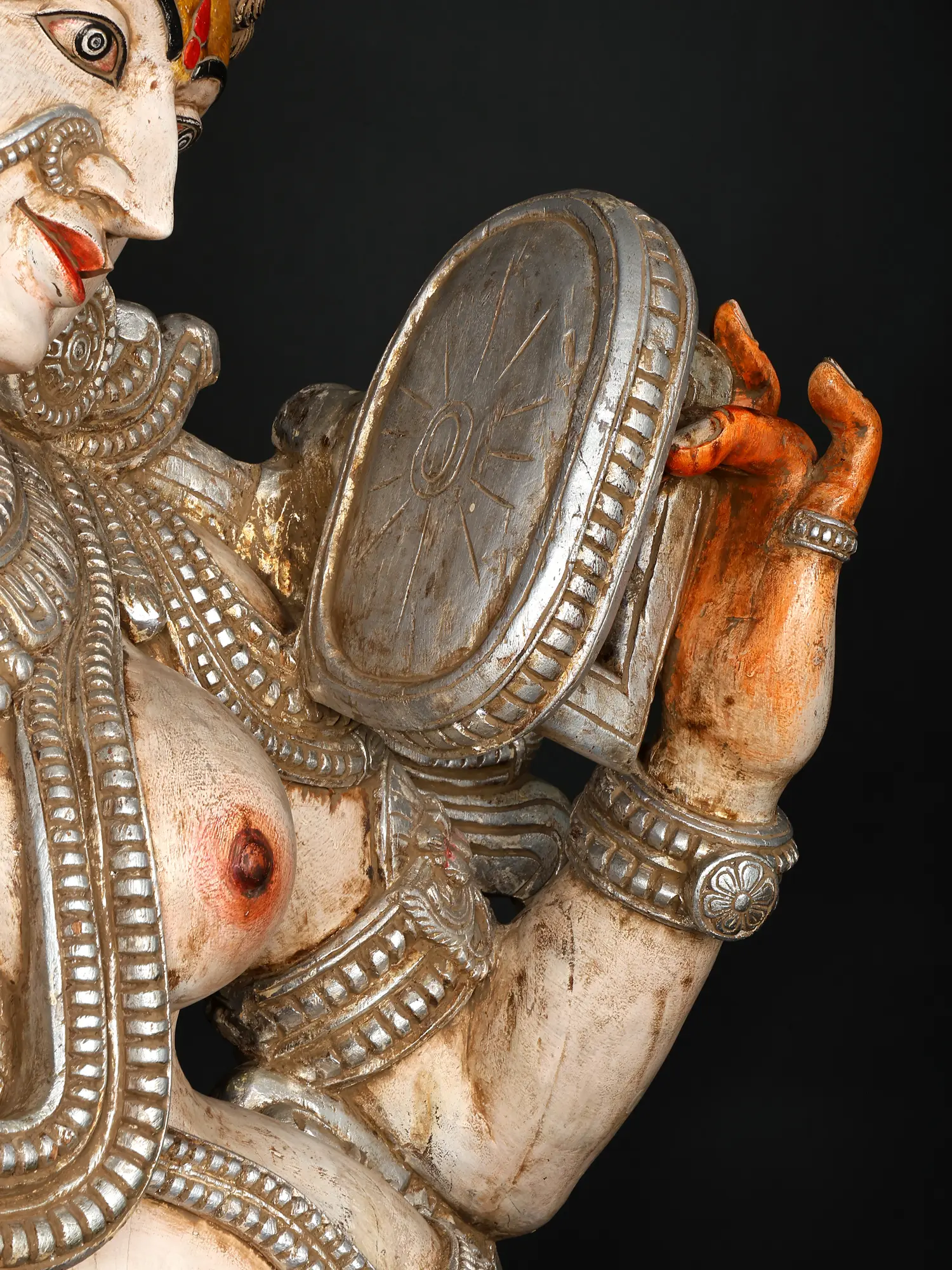 This magnificent carving captures the ethereal beauty of an Apsara, a celestial dancer from ancient Indian lore, bringing a touch of divine allure and artistic mastery to your space. Its commanding presence makes it a captivating centerpiece, inviting contemplation and admiration.