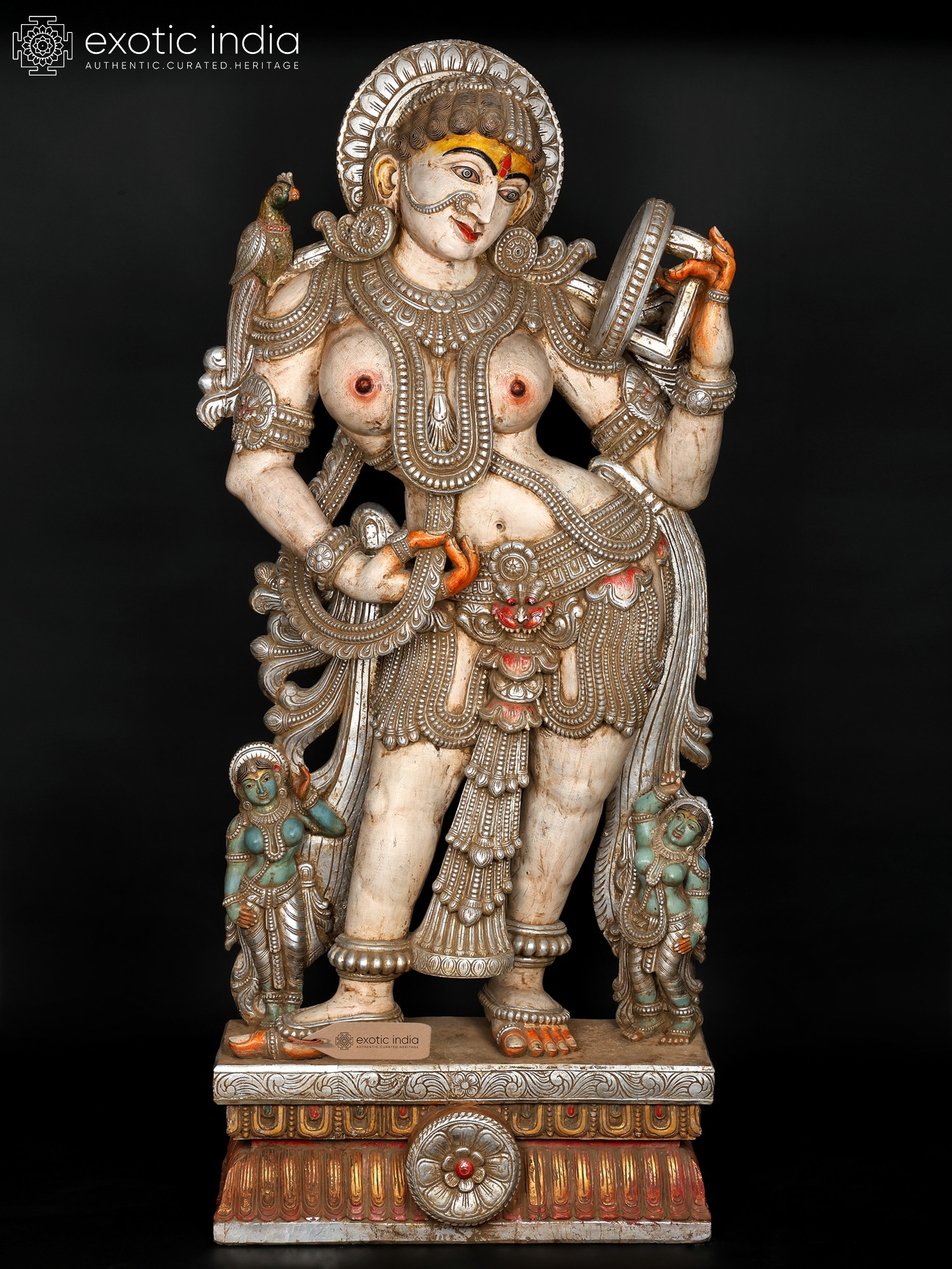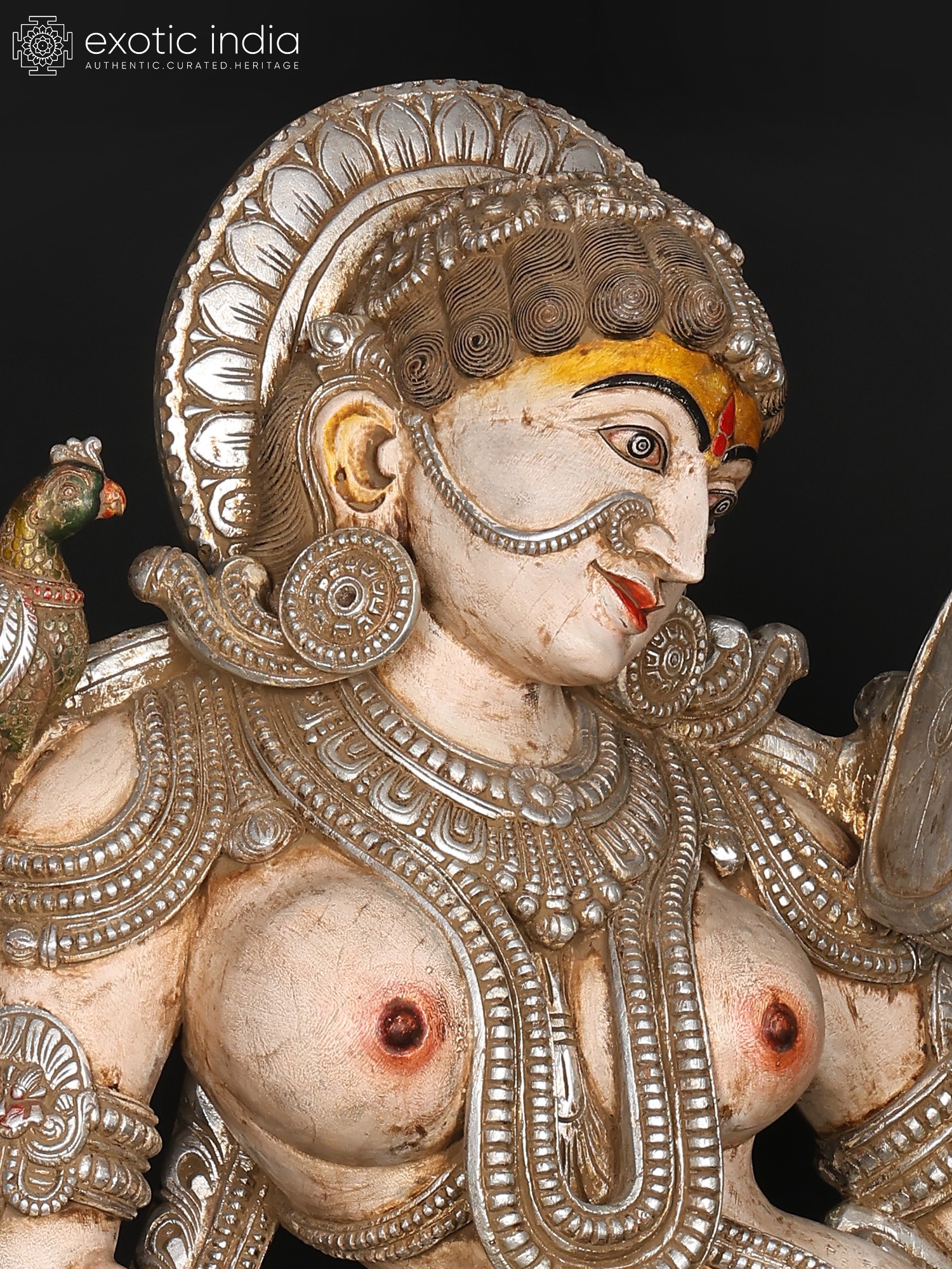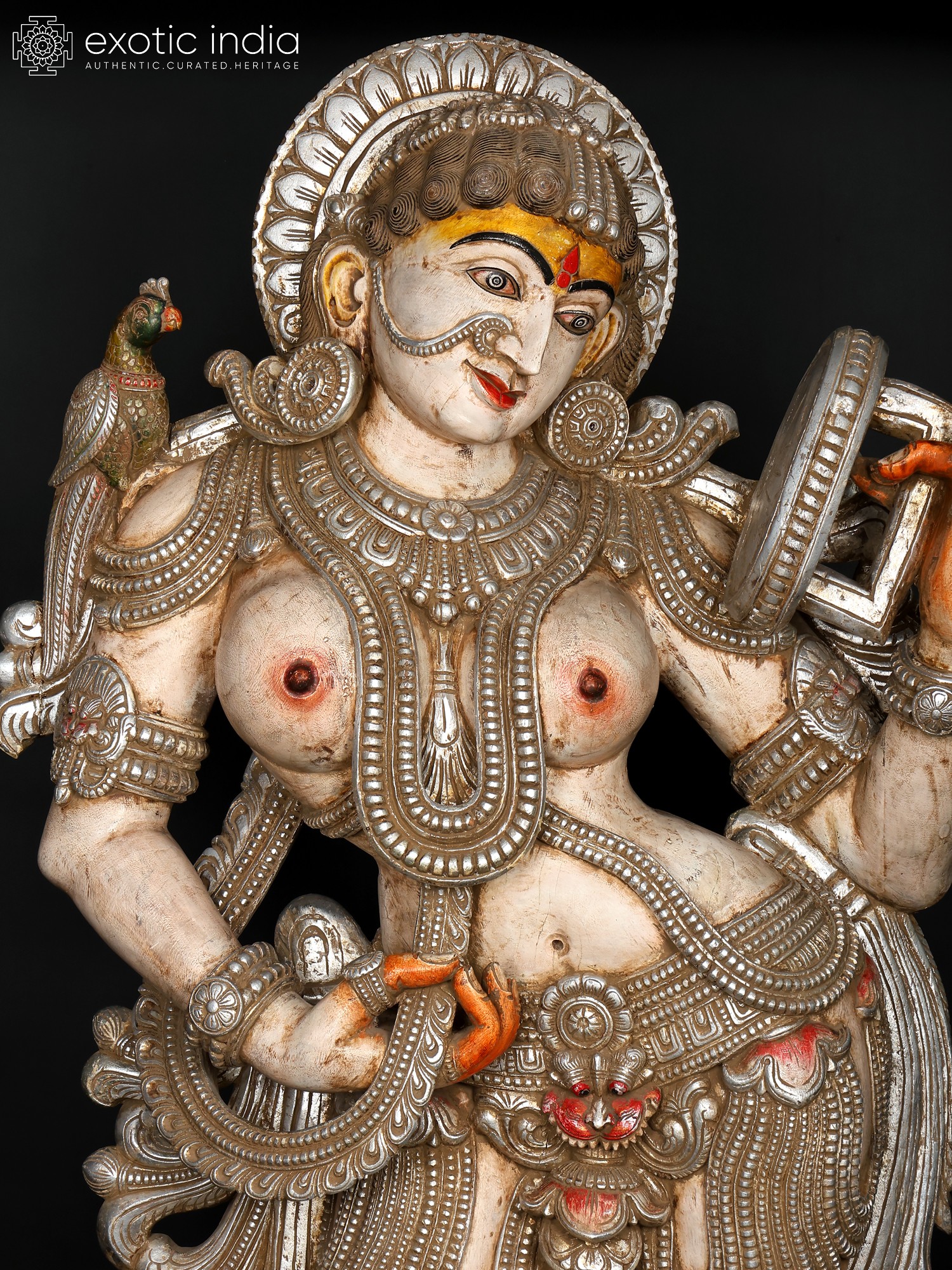 This magnificent carving captures the ethereal beauty of an Apsara, a celestial dancer from ancient Indian lore, bringing a touch of divine allure and artistic mastery to your space. Its commanding presence makes it a captivating centerpiece, inviting contemplation and admiration.