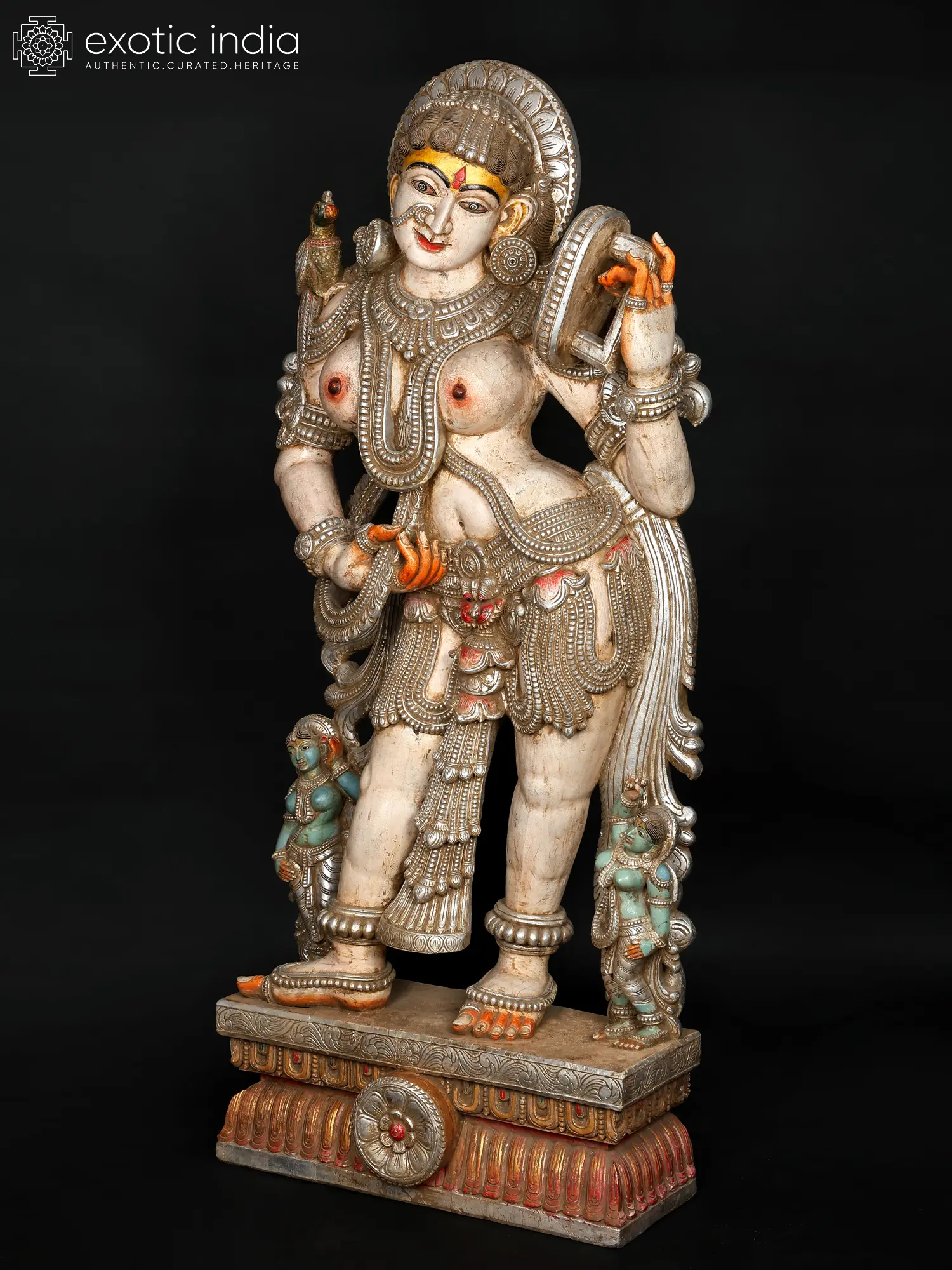 72" Huge Mirror Lady (Apsara) | Wood Carving
