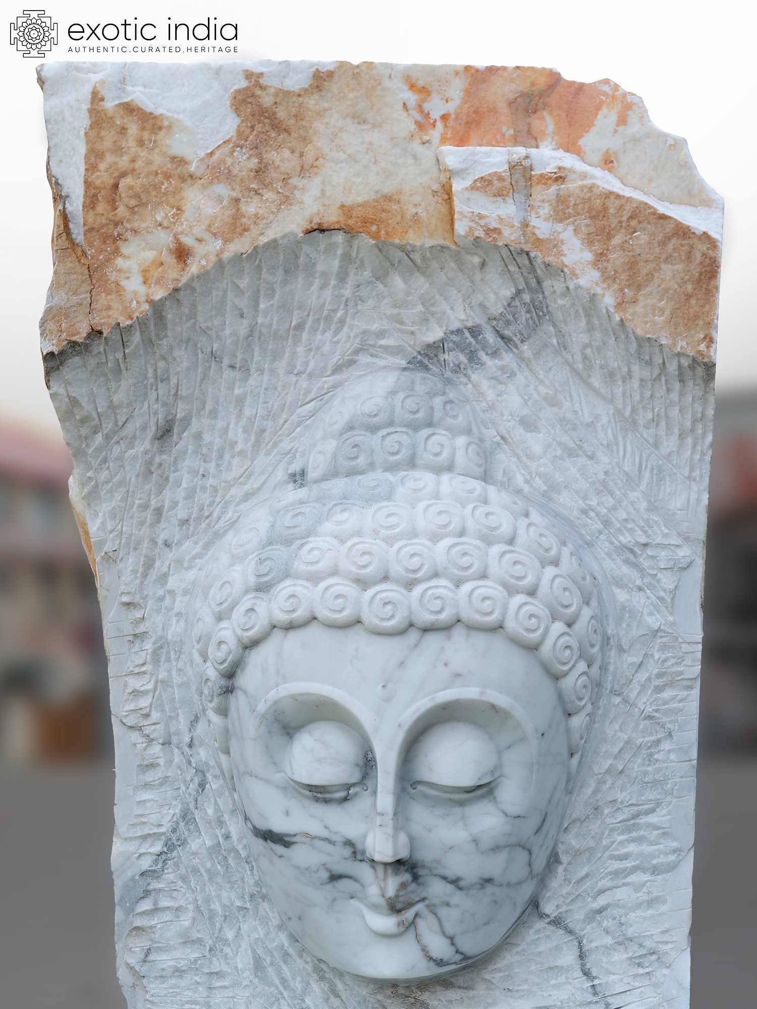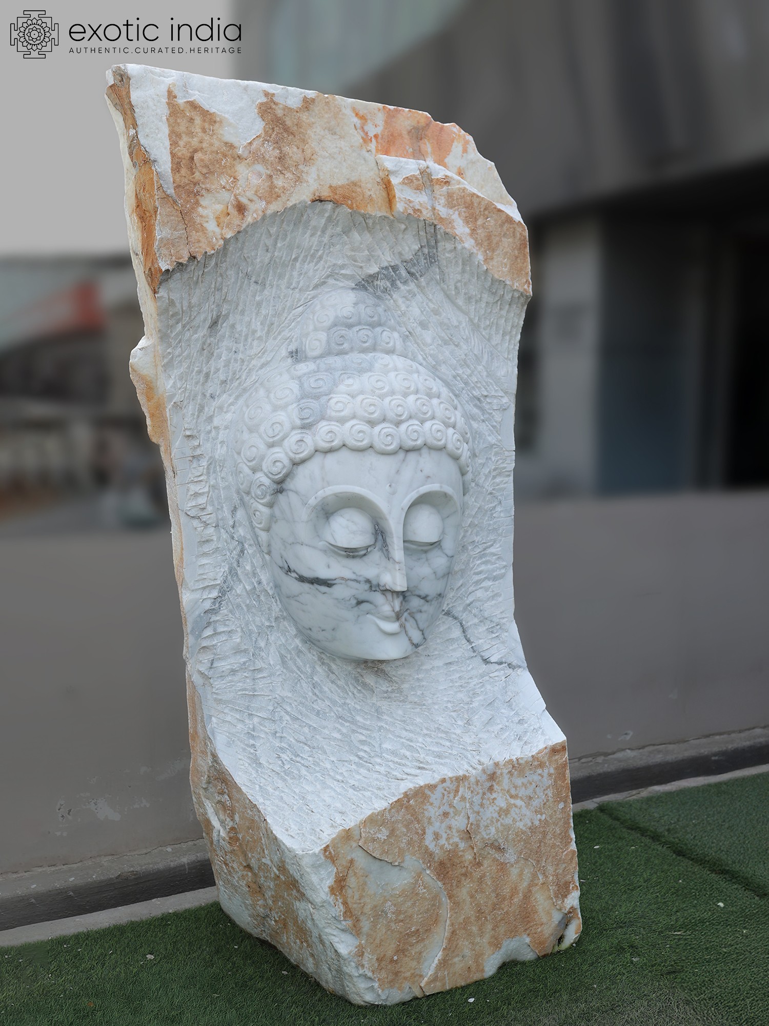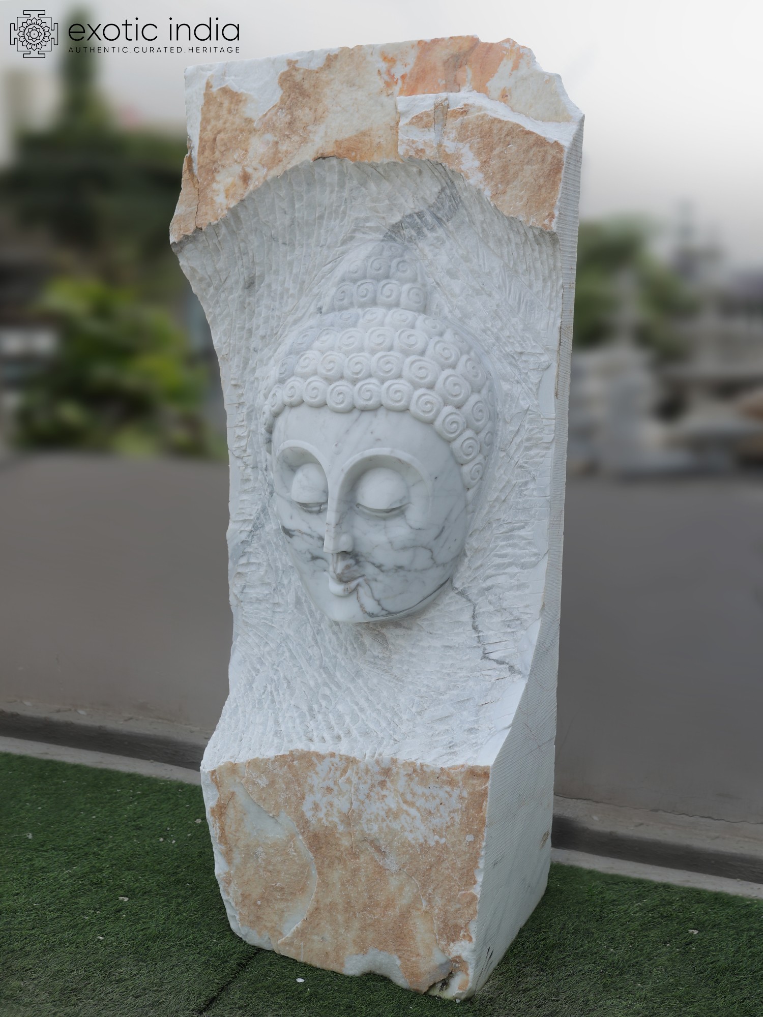 The use of natural marble, a material deeply embedded in India's artistic and architectural history, speaks volumes about the craftsmanship and cultural significance of this piece. Marble has been a favored medium for sculptures and monuments for centuries, from the majestic temples of Rajasthan to the iconic Taj Mahal. This sculpture, while modern in its artistic interpretation, pays homage to this rich legacy. The rough-hewn, natural state of the marble, juxtaposed with the polished, detailed carving of the Buddha's face, evokes the idea of finding beauty and divinity within the raw, unformed elements of existence. It’s a dialogue between nature's inherent artistry and the sculptor's skilled hands. ––––––––––