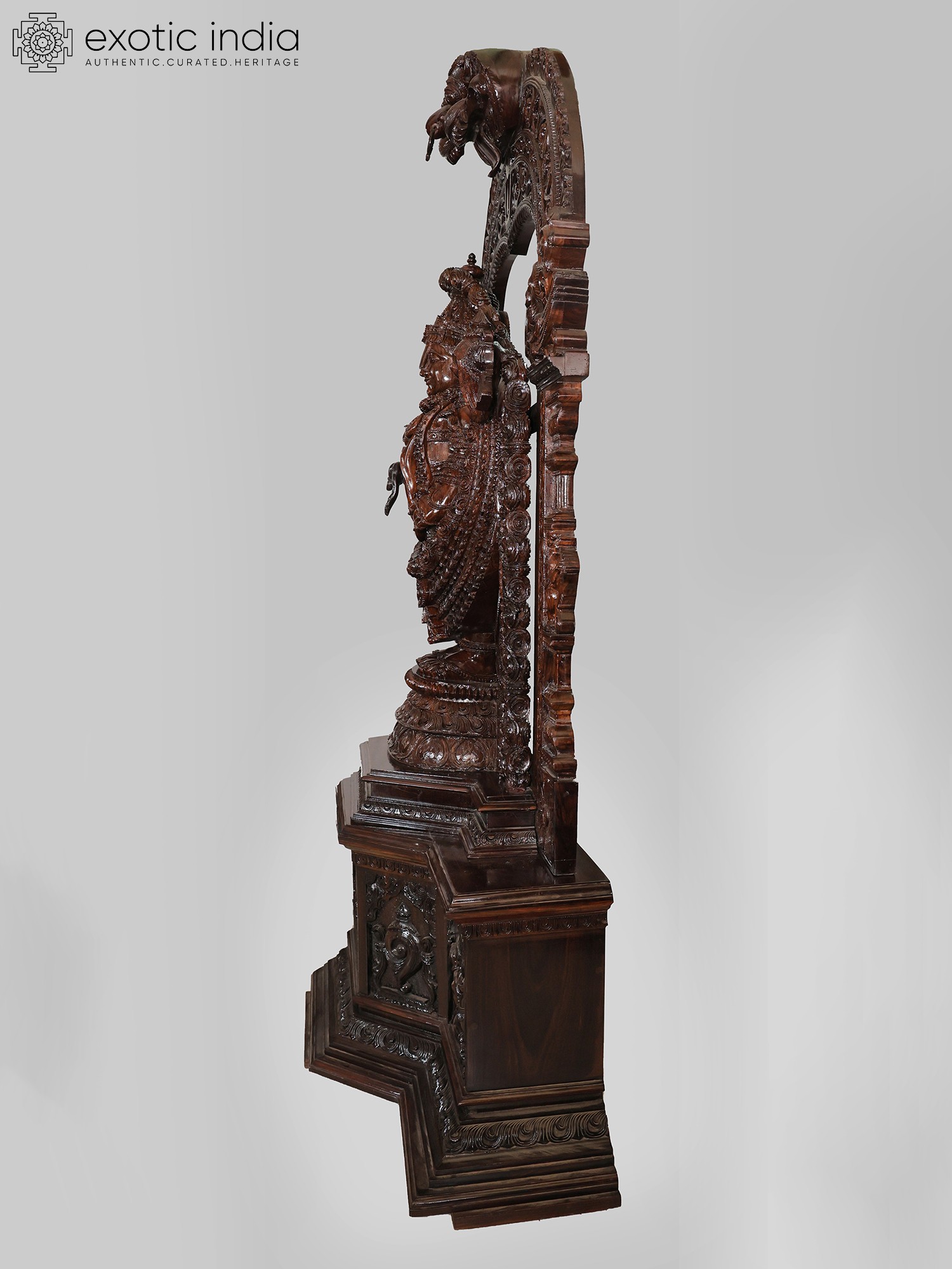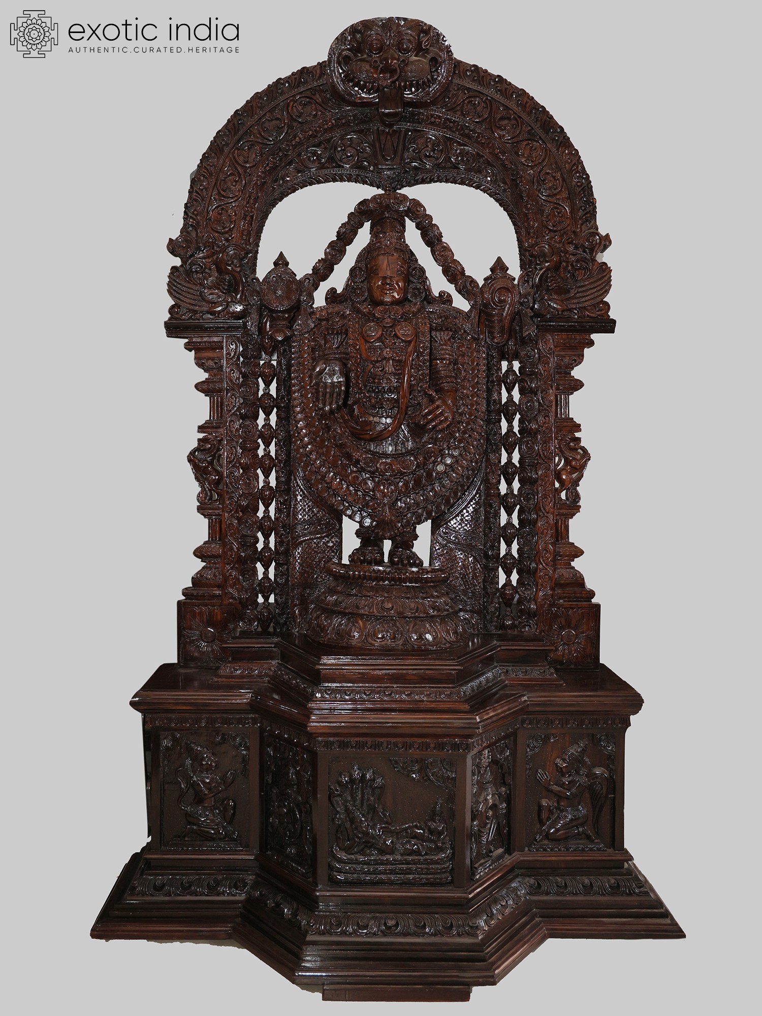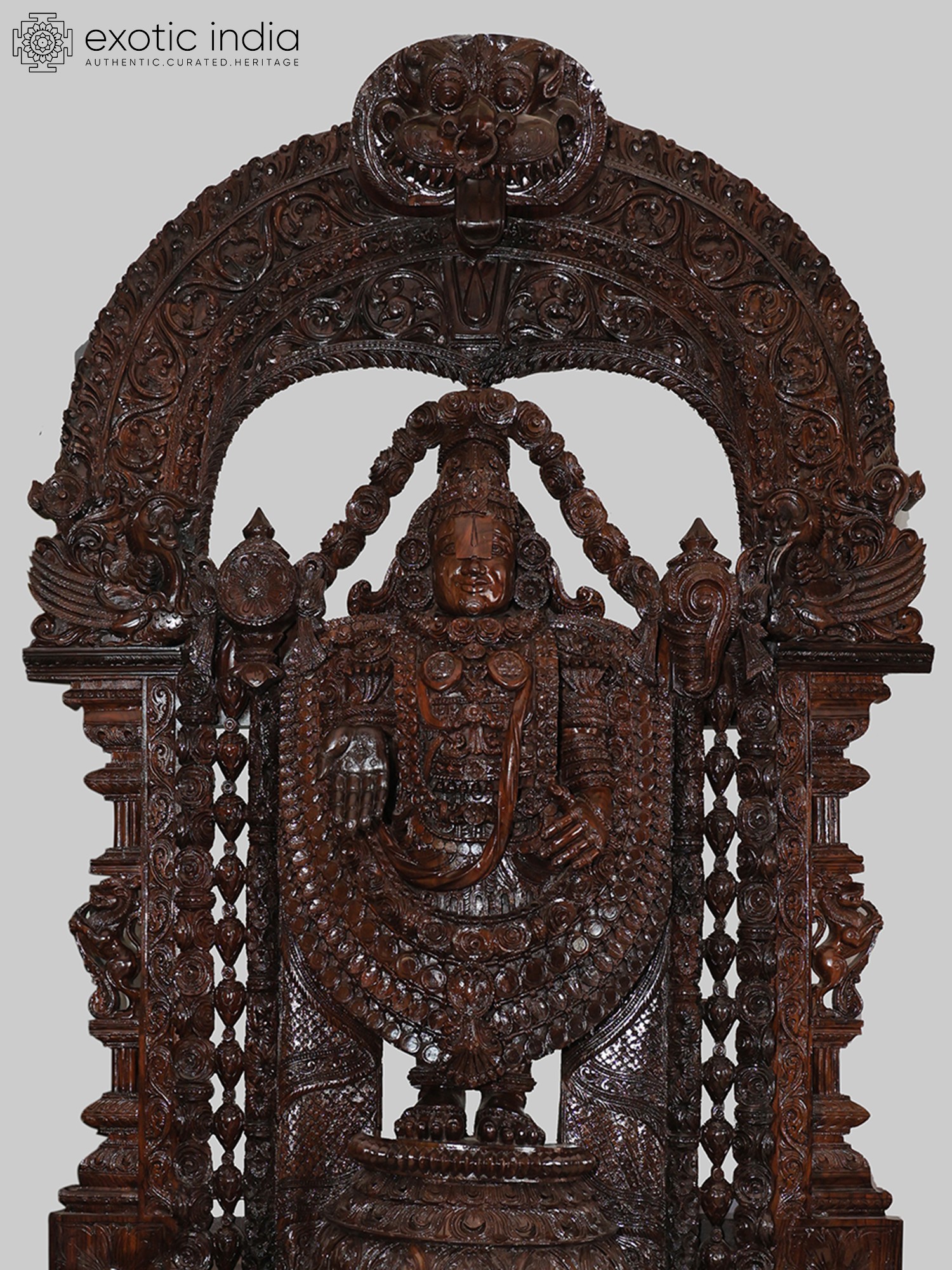 28" Lord Tirupati Balaji (Venkateshvara) with Kirtimukha Arch | Wood Carved Statue