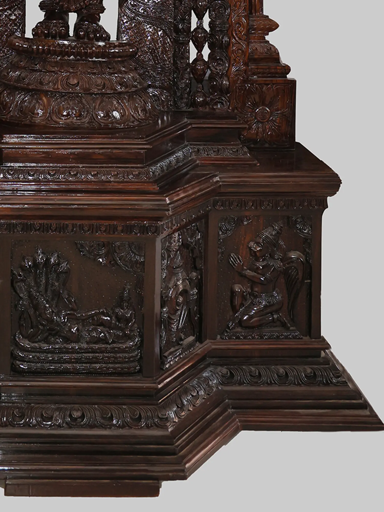 To maintain the exquisite beauty of this wooden masterpiece, a gentle dusting with a soft, dry cloth is recommended. Avoid harsh chemicals or excessive moisture, which could compromise the integrity of the wood and its intricate carvings. With proper care, this exceptional creation will not only retain its allure but will continue to be a treasured heirloom, appreciated for its artistry and spiritual resonance for generations to come.