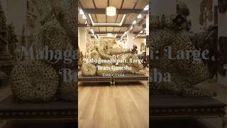 This magnificent 78-inch brass statue of Lord Ganesha is a breathtaking masterpiece, meticulously crafted to capture the essence of this revered Hindu deity. Its imposing size and intricate detail make it a truly awe-inspiring centerpiece for any home or sacred space. The statue depicts Ganesha in a relaxed posture, seated comfortably, radiating an aura of tranquility and wisdom. The intricate brass leaf design adds a captivating textural element to the overall design, reflecting light beautifully and creating a shimmering effect. Each leaf is individually placed, showcasing the dedication and artistry behind its creation. Ganesha, the remover of obstacles, is celebrated as the harbinger of prosperity, good fortune, and wisdom. His image is often placed at the entrance of homes and businesses to invite positive energy and ward off negativity. This statue is more than just a decorative piece; it's an embodiment of faith and a symbol of auspicious beginnings.