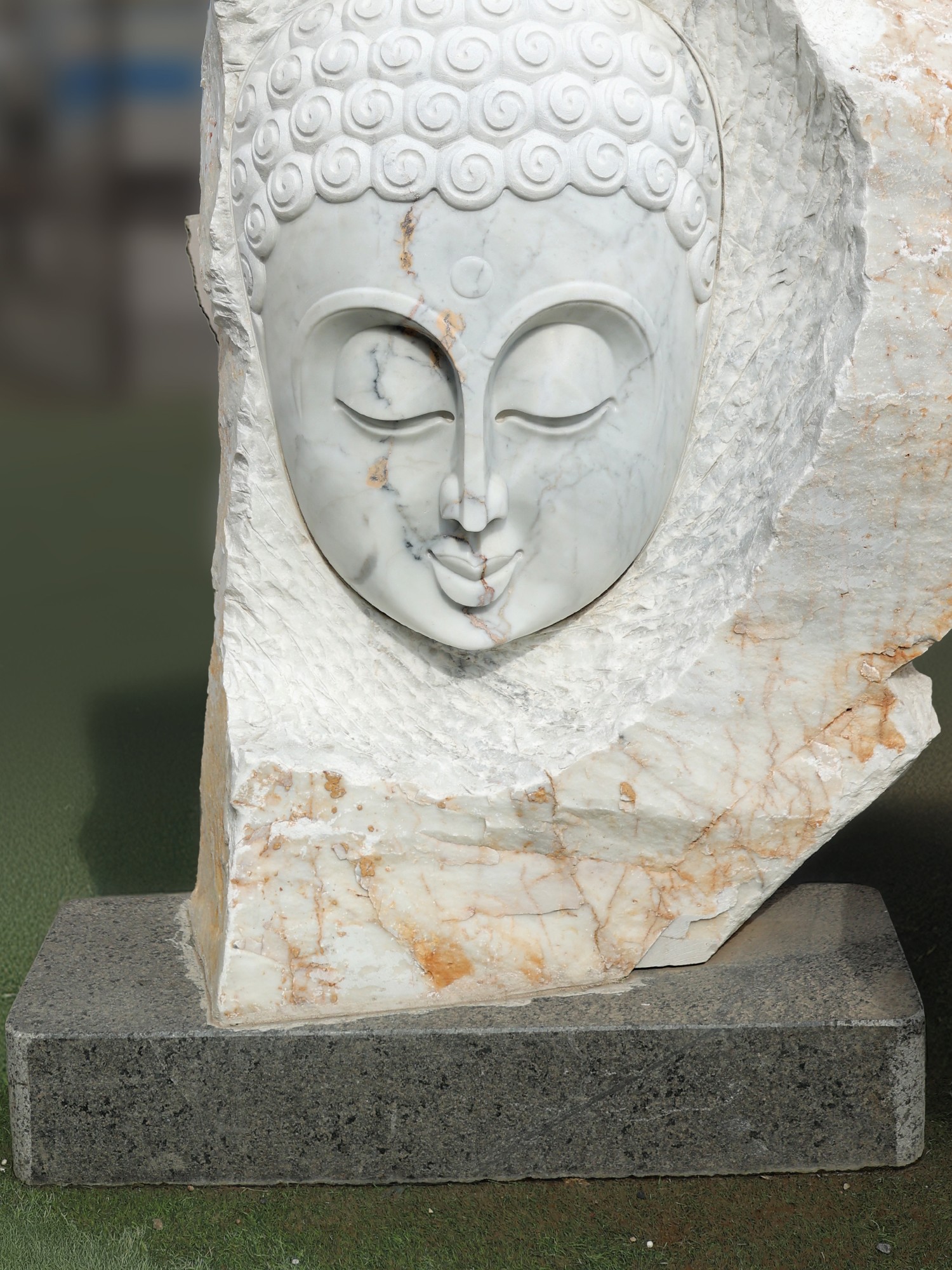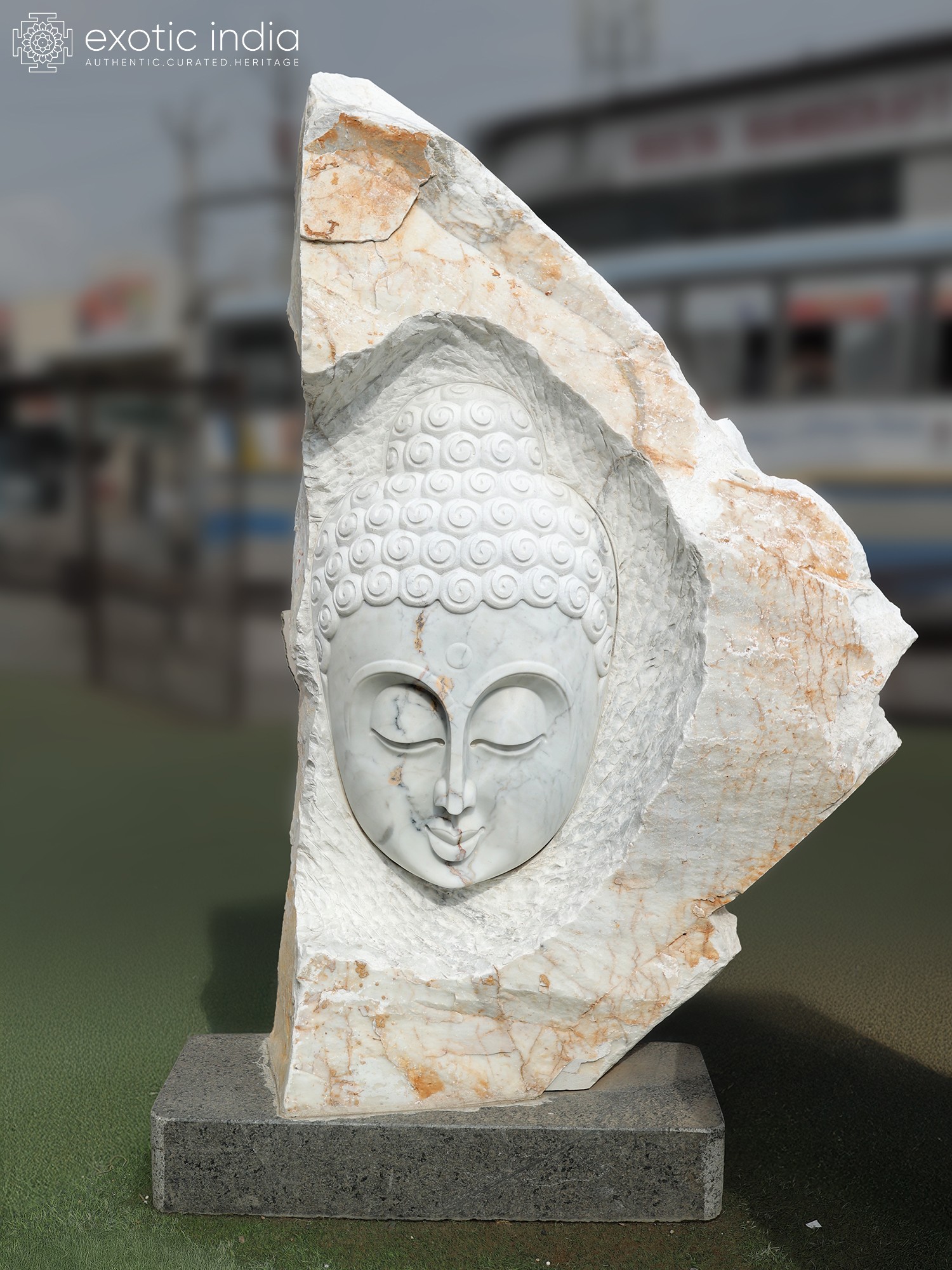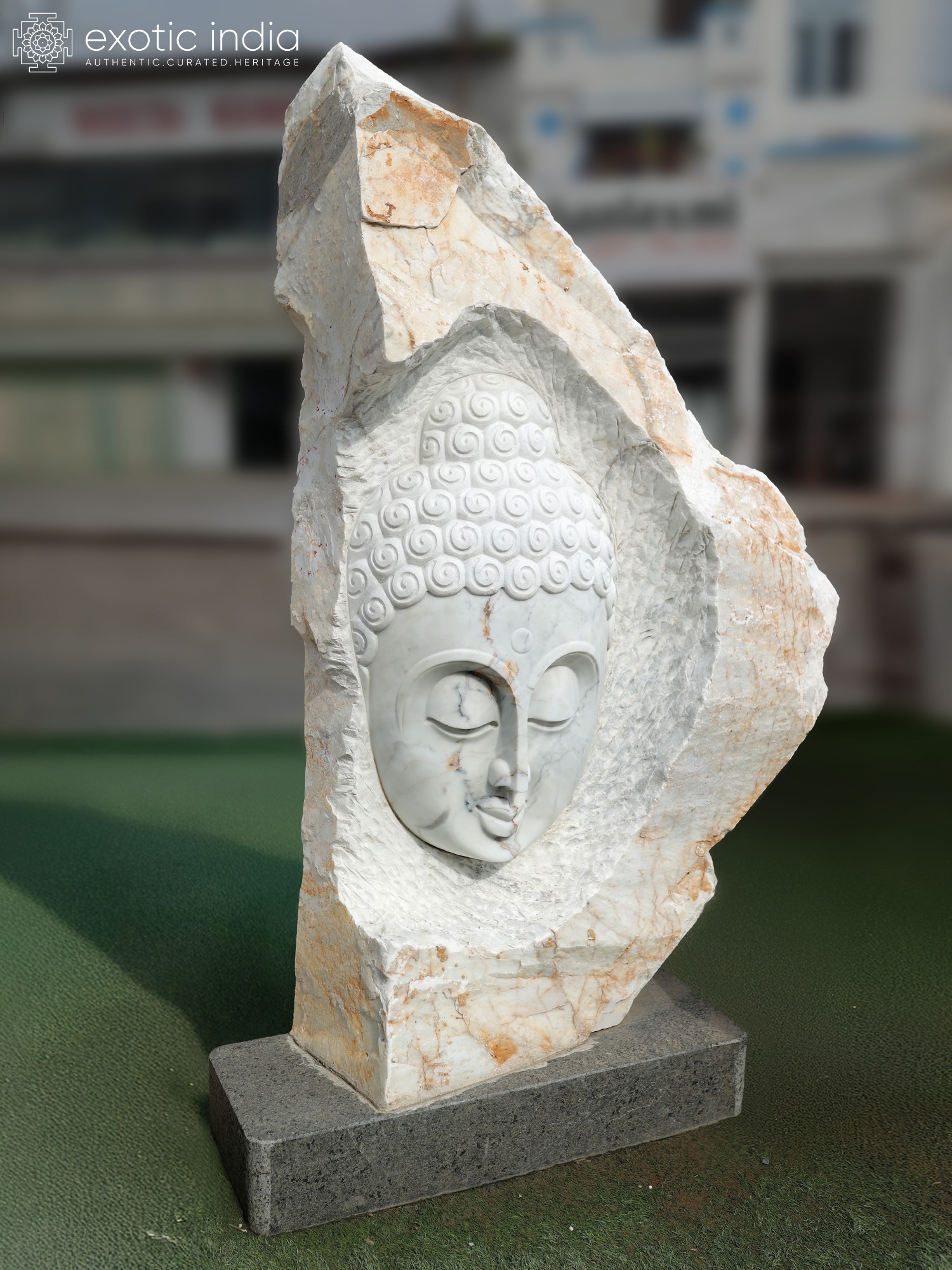 77" Great Buddha Face | Modern Art Sculpture | White Marble | Excellent Indian Art