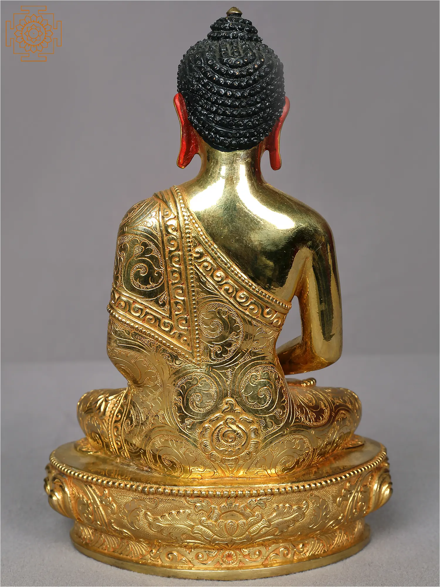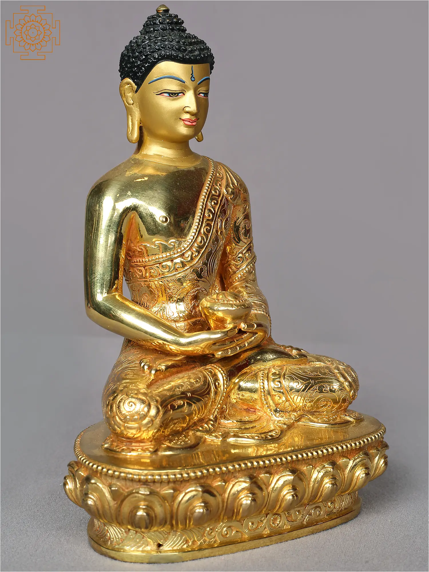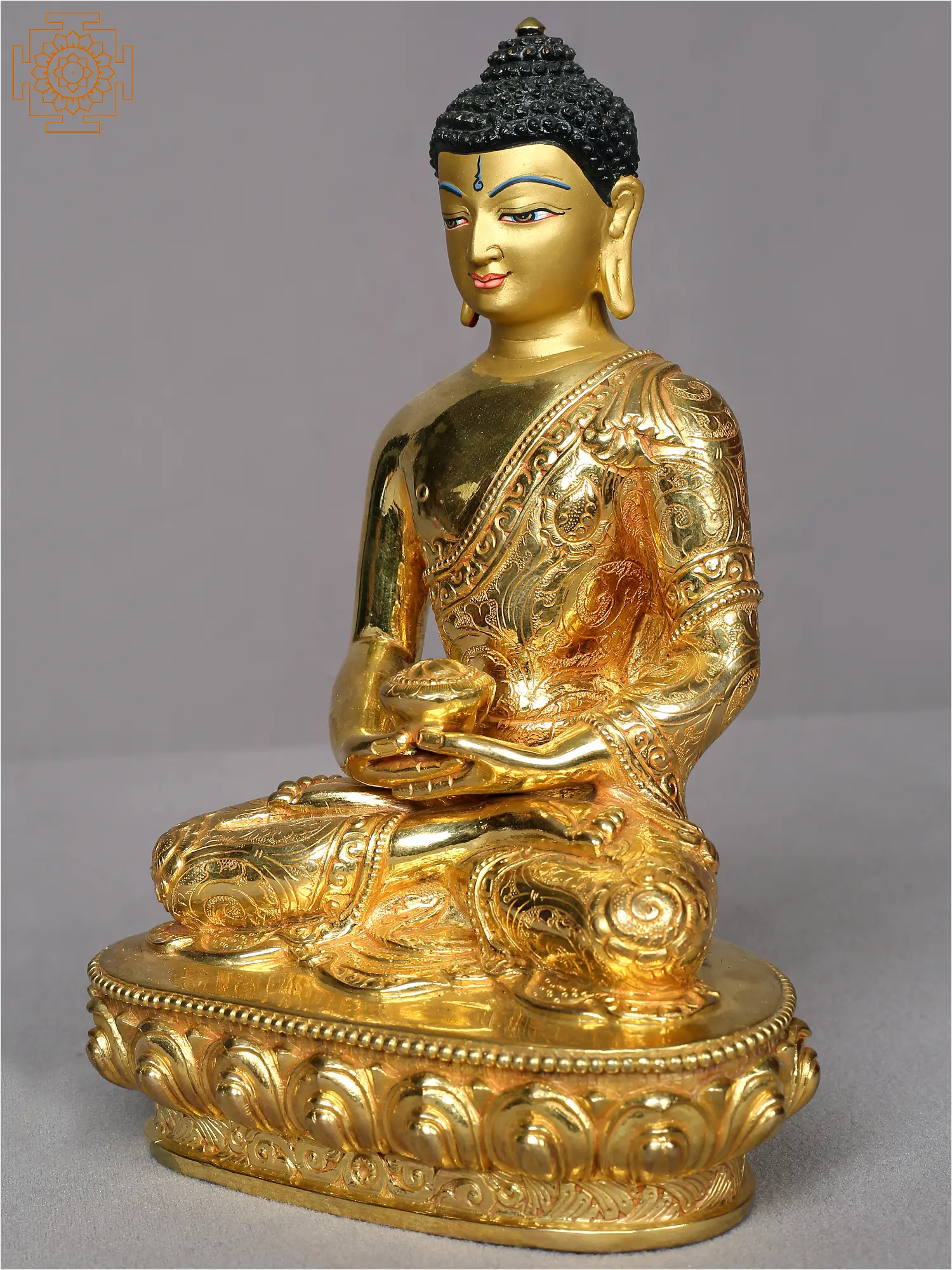 18" Lord Amitabha Buddha Statue On Pedestal In Copper Gold Plated From Nepal | Handmade Statue