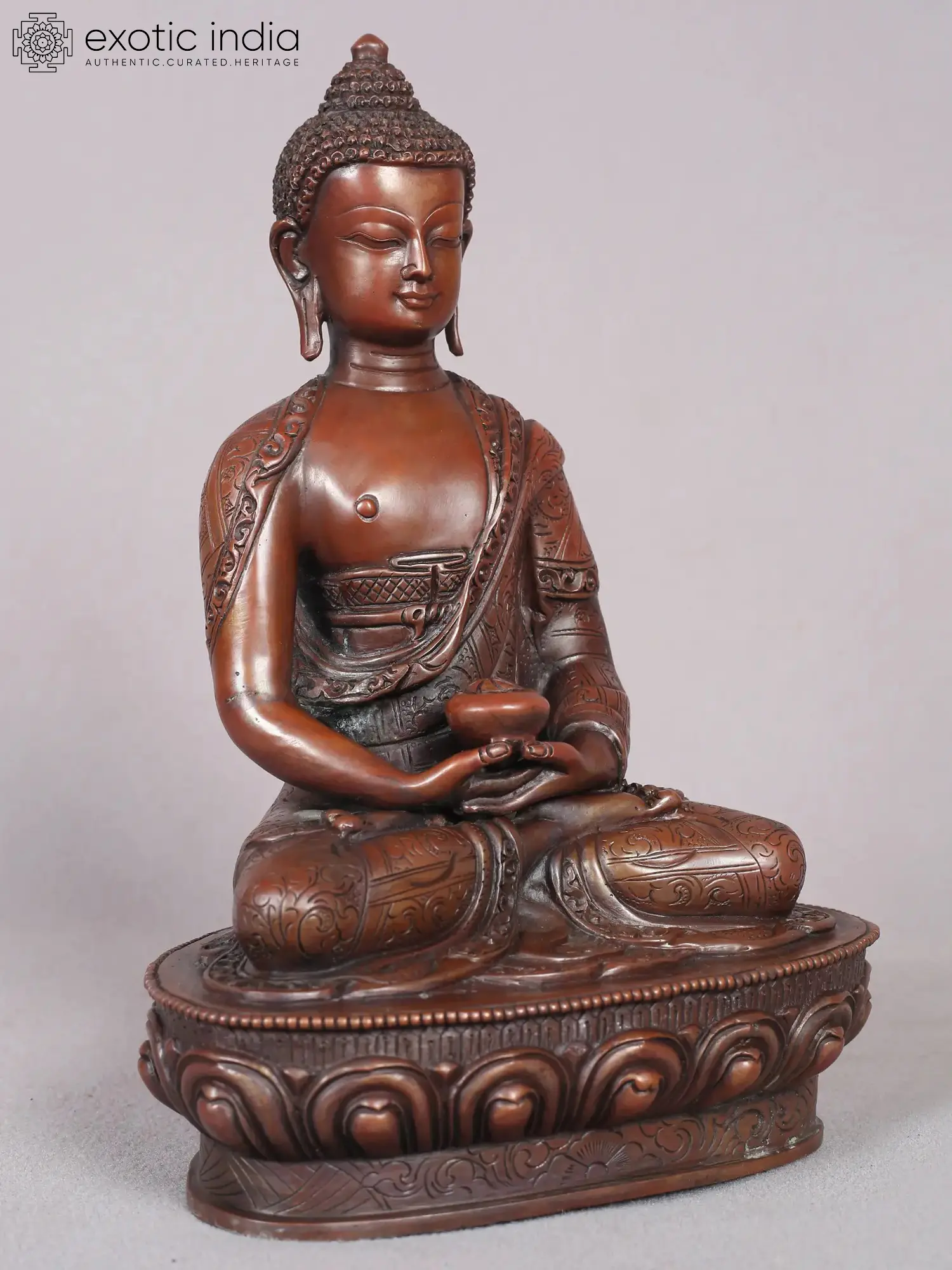 In this artful portrayal, Amitabha Buddha's essence is channeled with profound precision and spirituality. Seated on a lotus throne in repose, his hands gently cup a sacred vessel, a vessel that brims not with mere sustenance, but with the nectar of divine wisdom. His gaze, a conduit of infinite insight and boundless love, penetrates the depths of existence, beckoning earnest seekers of truth into his transcendental embrace. The artisan's skilled hands have sculpted not merely a figure, but an experience-an experience that resonates with the very essence of Amitabha's compassionate promise to guide sentient beings towards ultimate liberation.