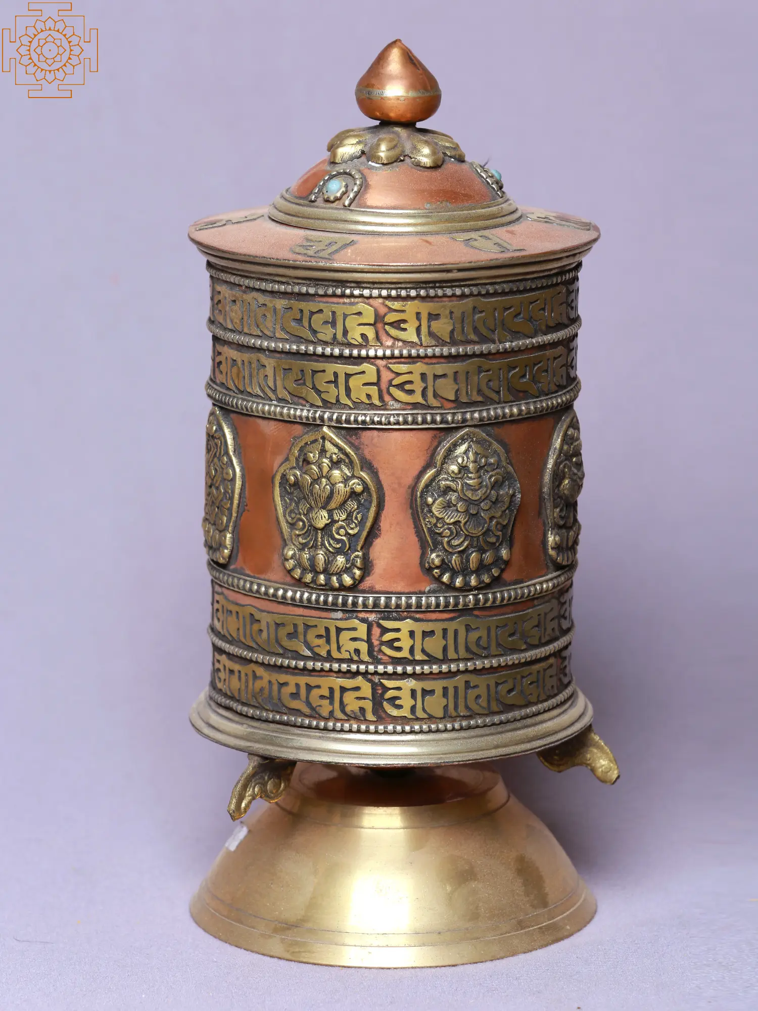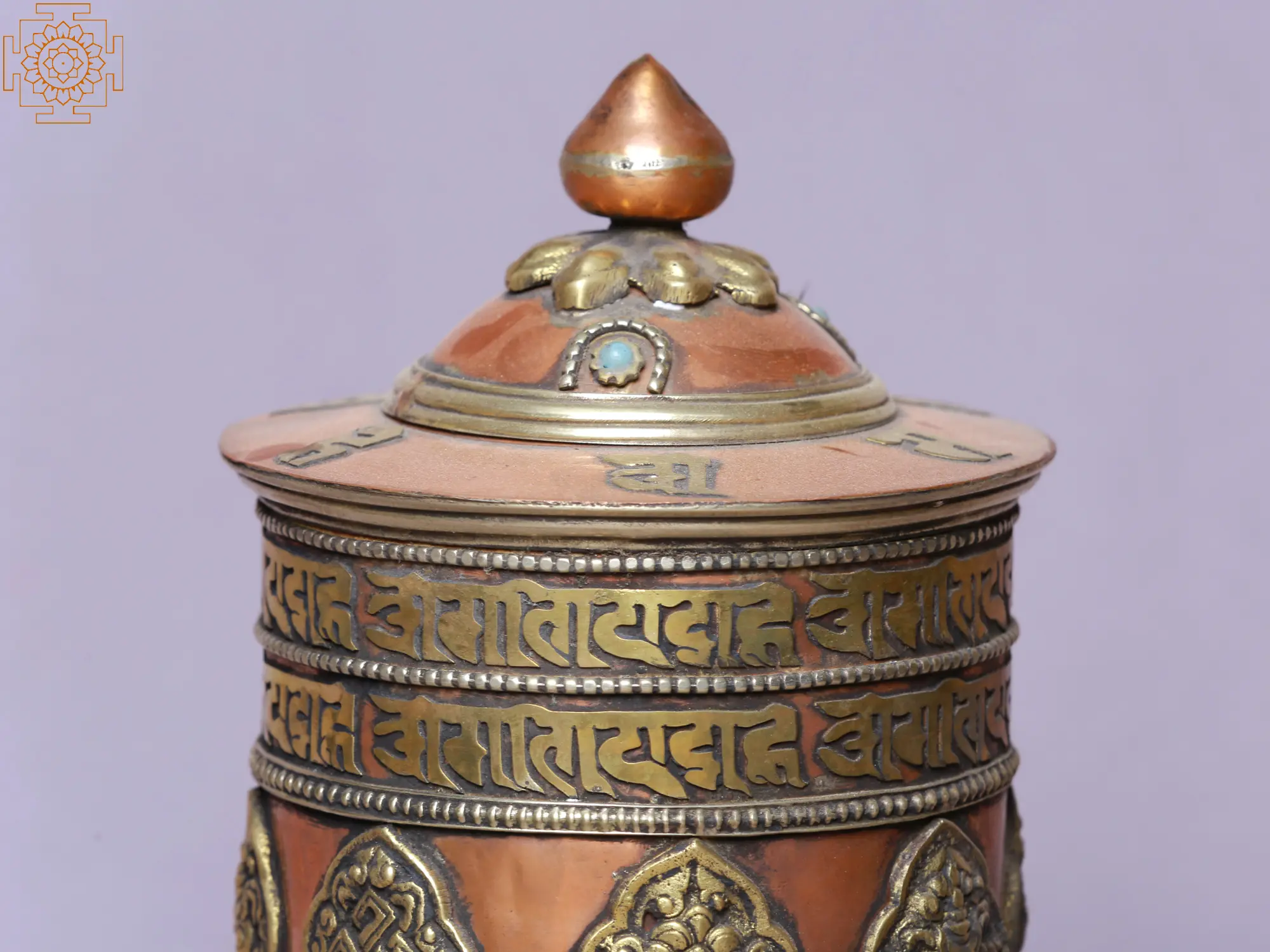 4" Small Tibetan Buddhist Prayer Wheel with Stone Work | Table Piece | Made in Nepal