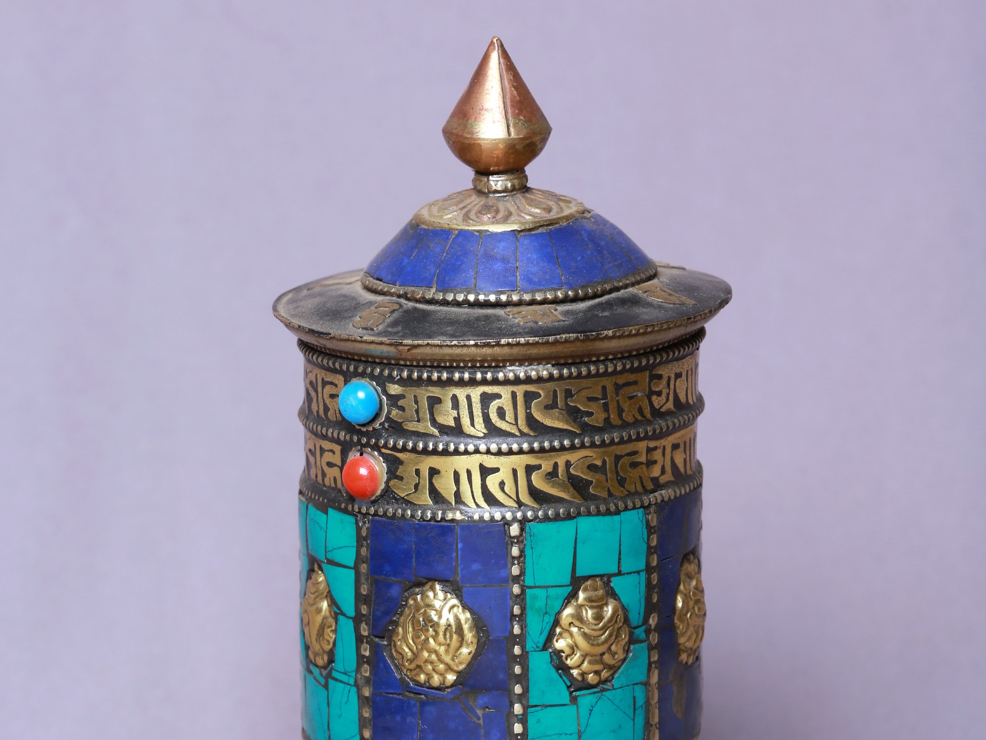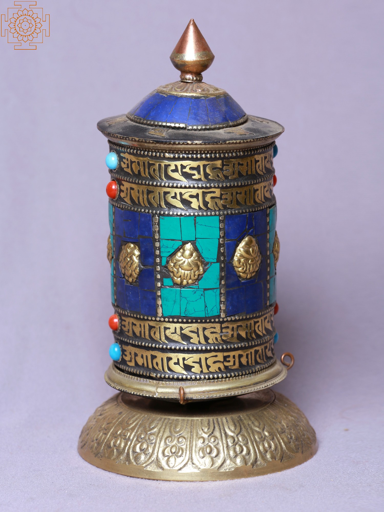 4" Small Tibetan Buddhist Prayer Wheel with Stone Work | Table Piece | Made in Nepal