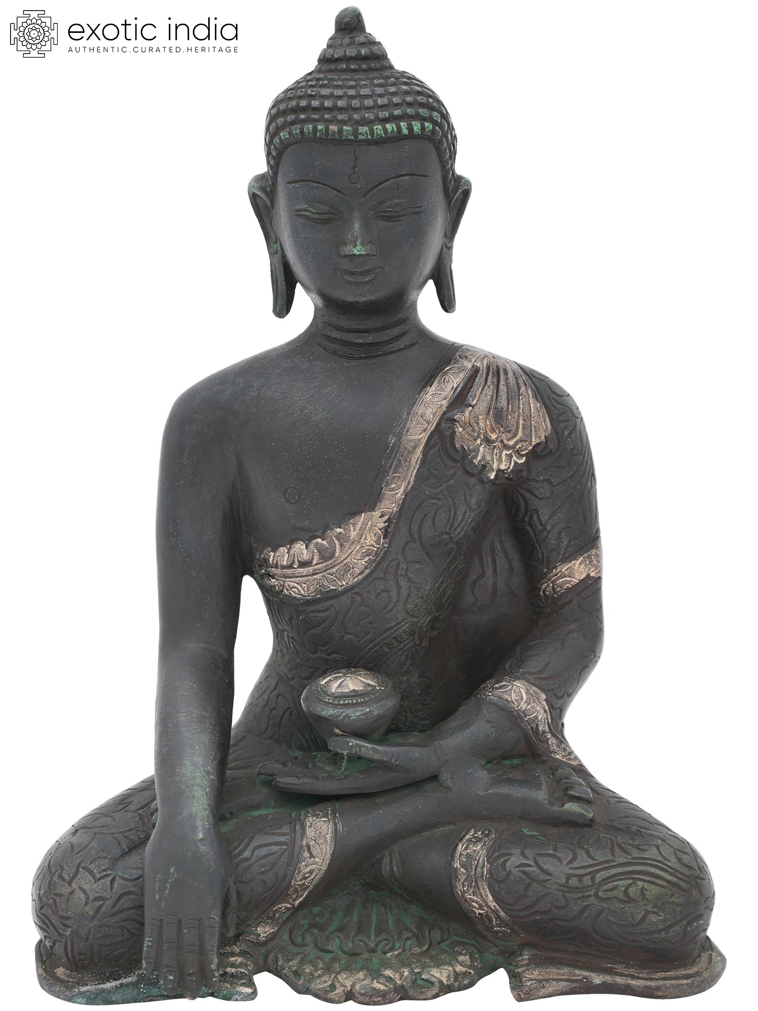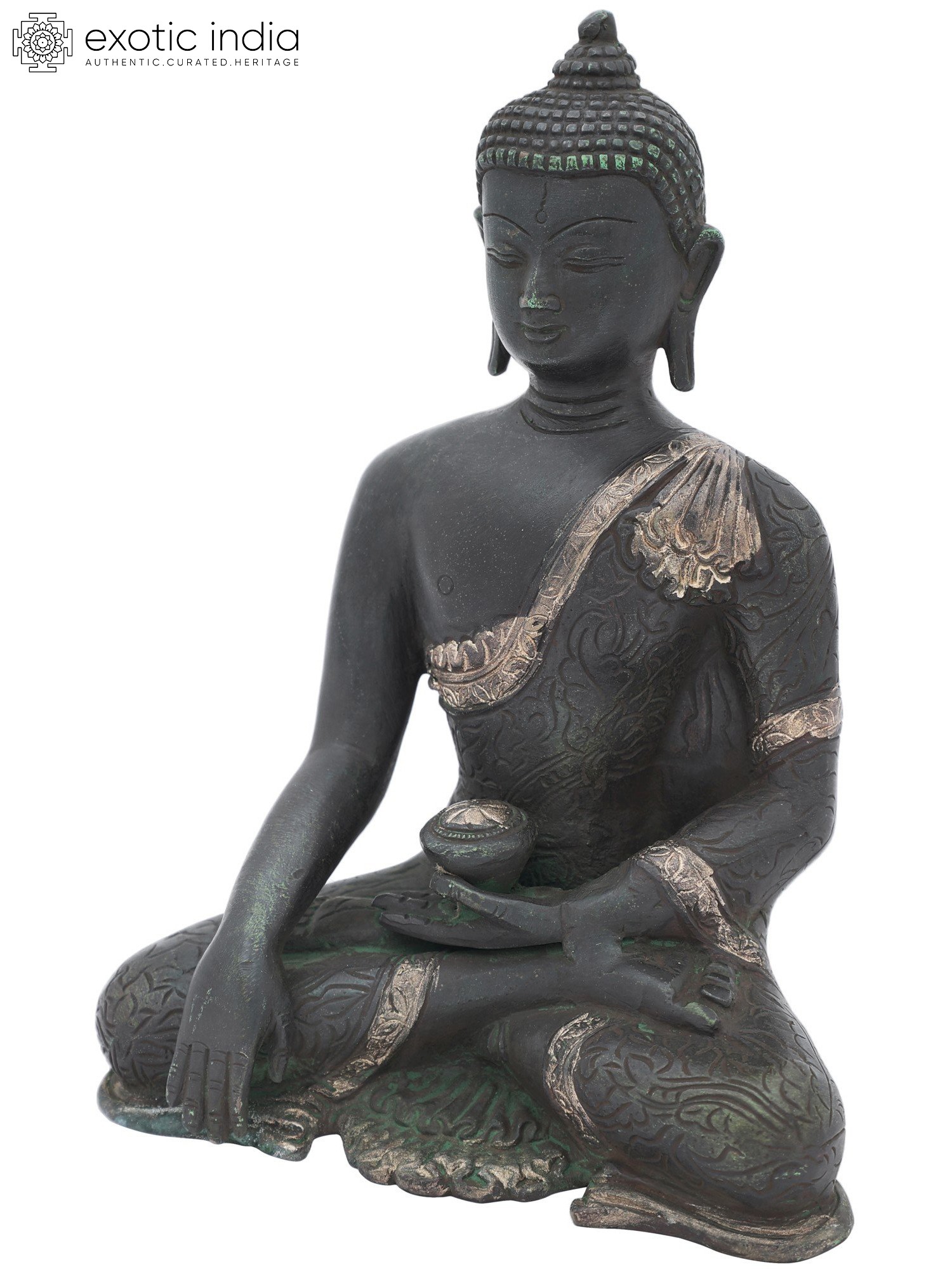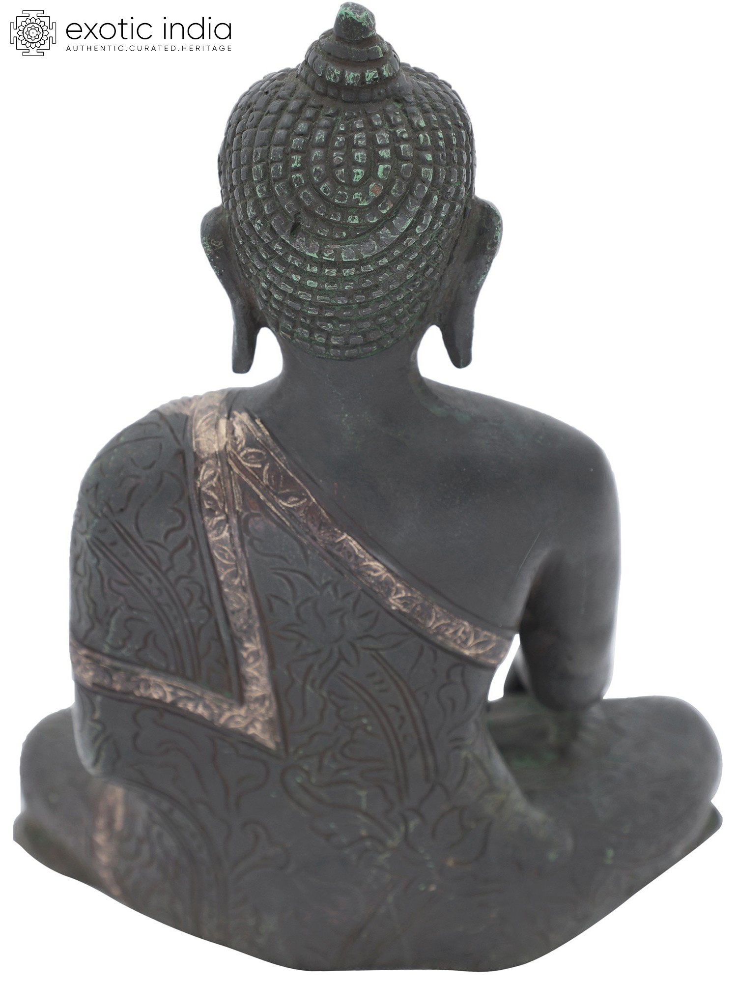 Note the multiple layers of his robe gathered perfectly on his left shoulder and a slight overlapping at the back, indicating as if Lord Buddha is adorned in a real robe. If you are a Buddhism follower or looking for some good Tibetan Buddha artefacts for your interior decoration, then don’t miss out on this brass sculpture, also available with two amazing colour options to choose from.