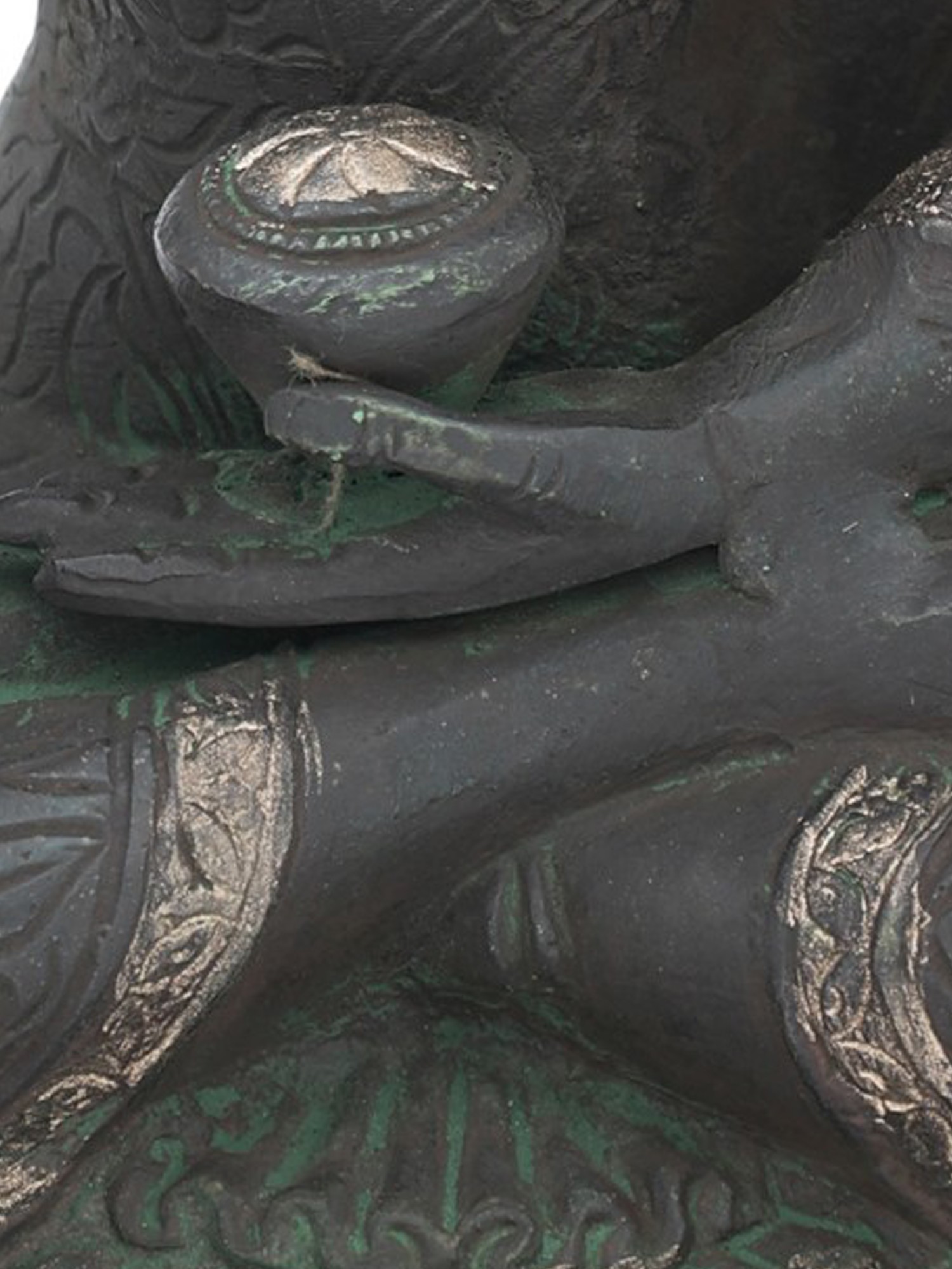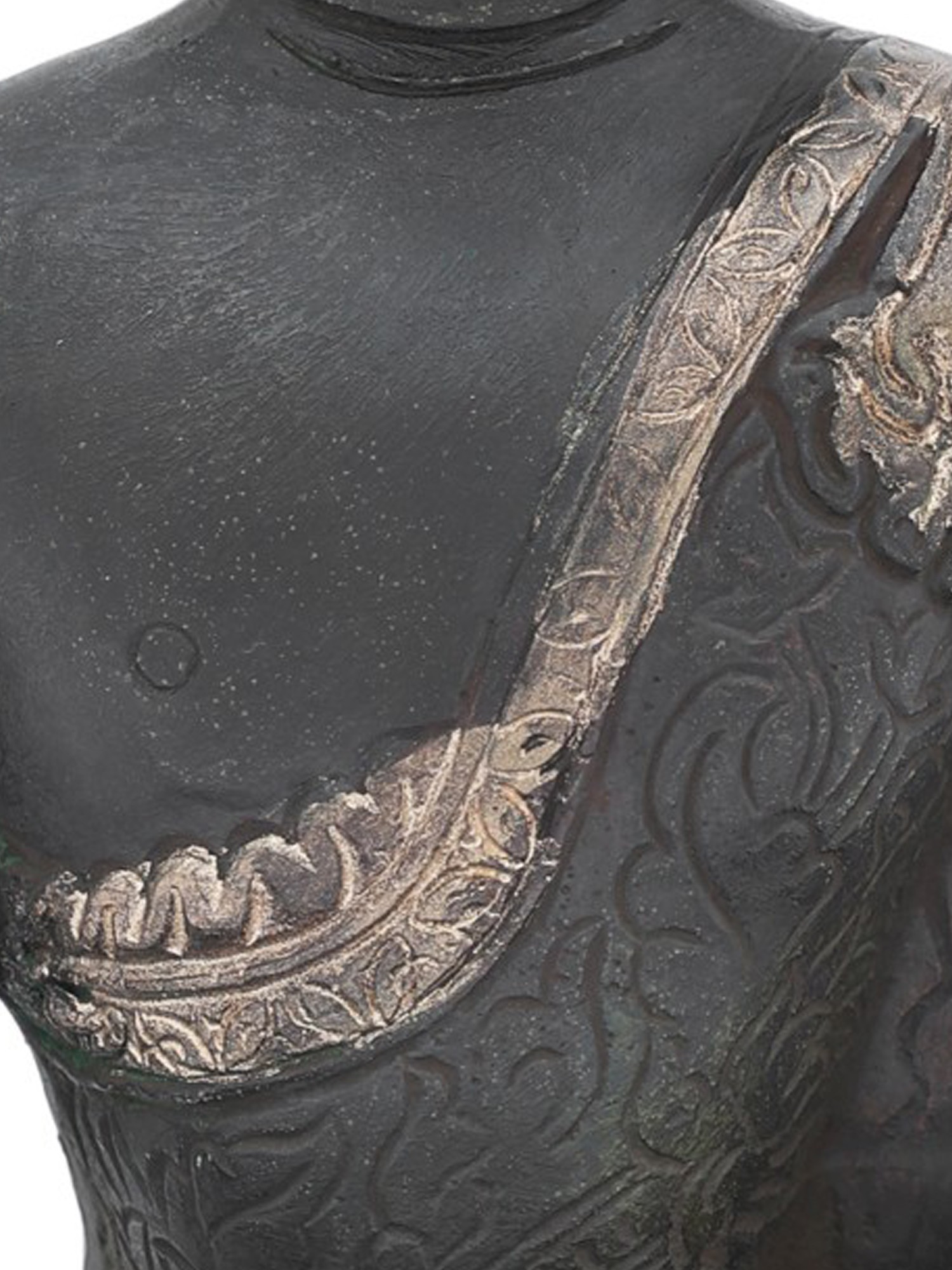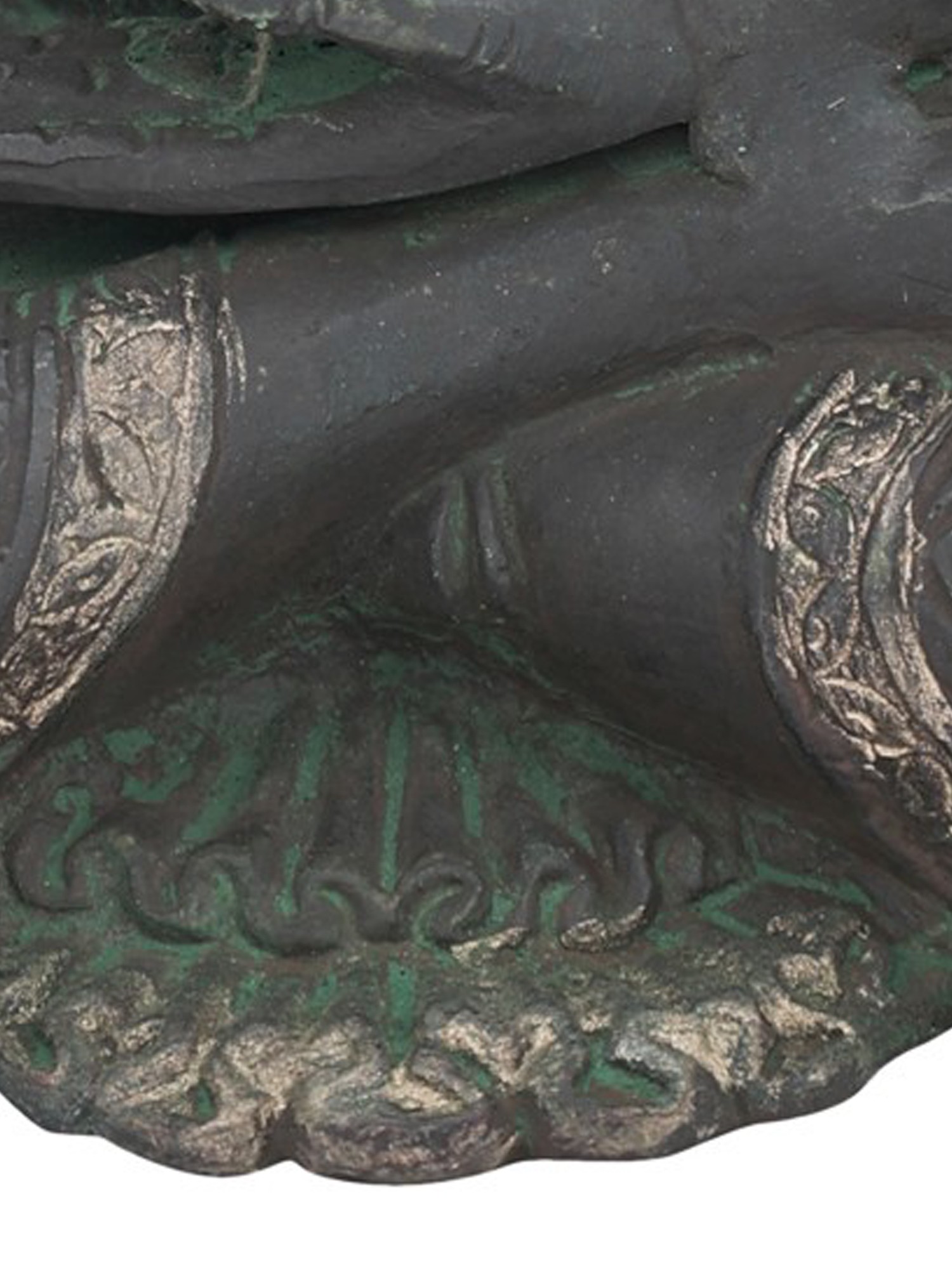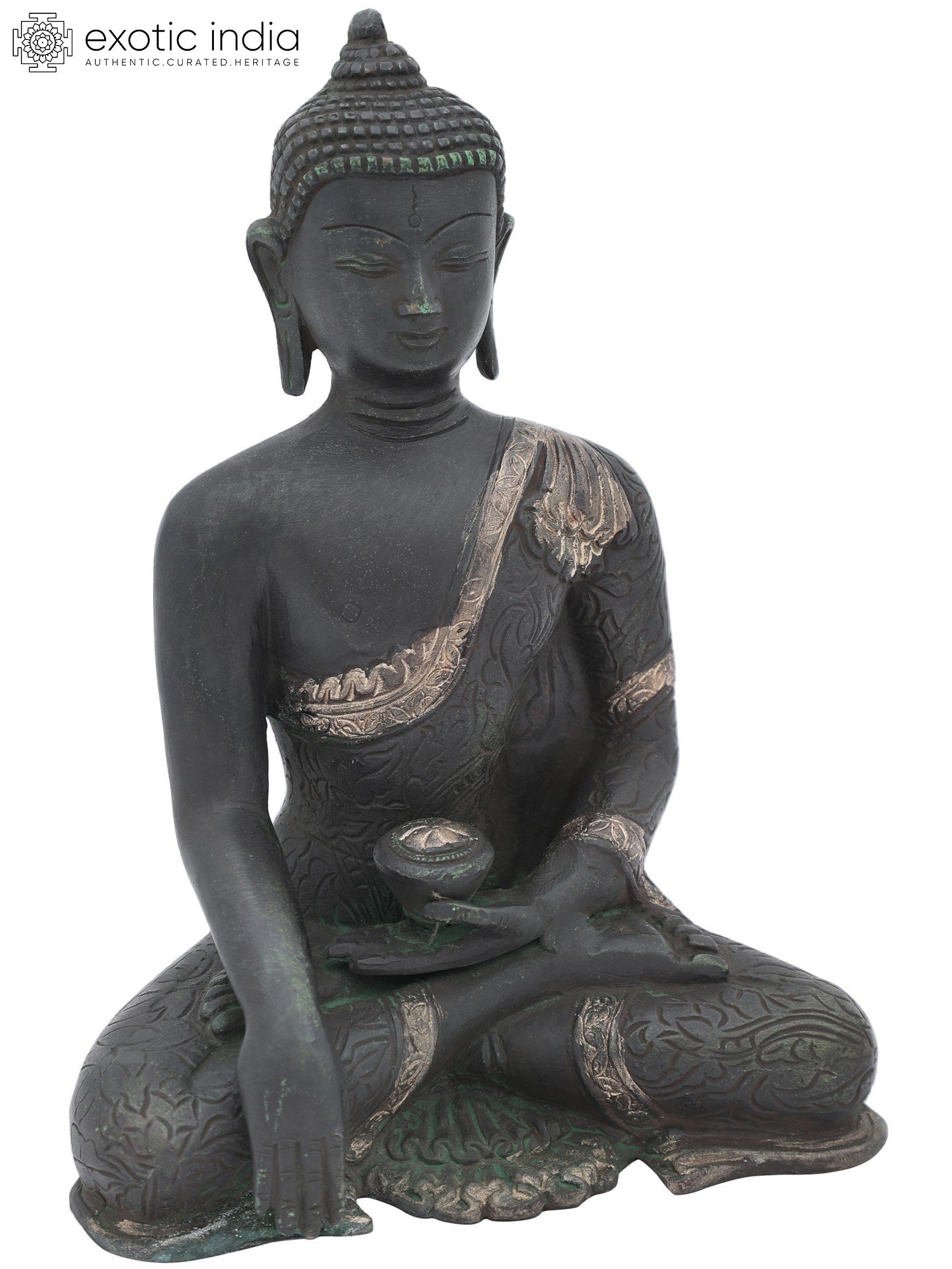 Note the multiple layers of his robe gathered perfectly on his left shoulder and a slight overlapping at the back, indicating as if Lord Buddha is adorned in a real robe. If you are a Buddhism follower or looking for some good Tibetan Buddha artefacts for your interior decoration, then don’t miss out on this brass sculpture, also available with two amazing colour options to choose from.