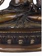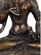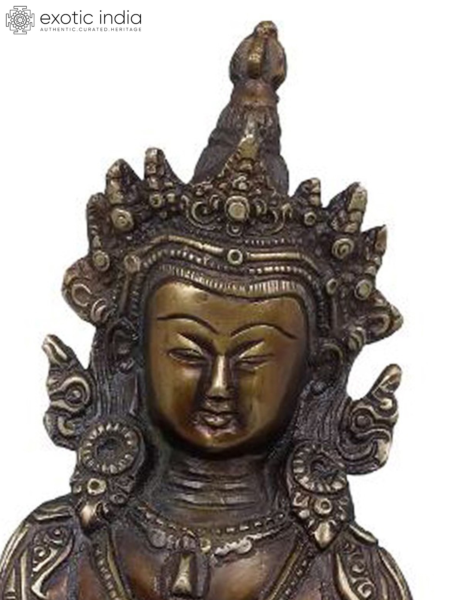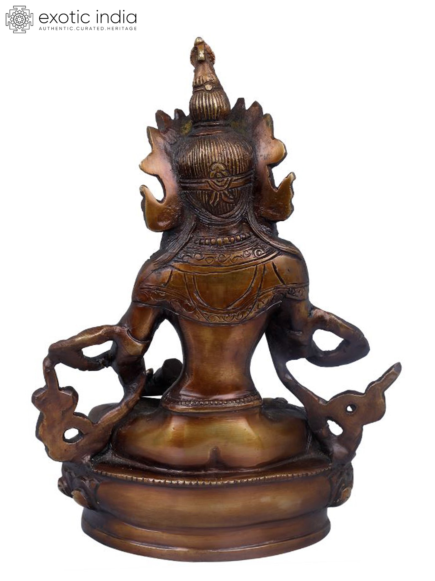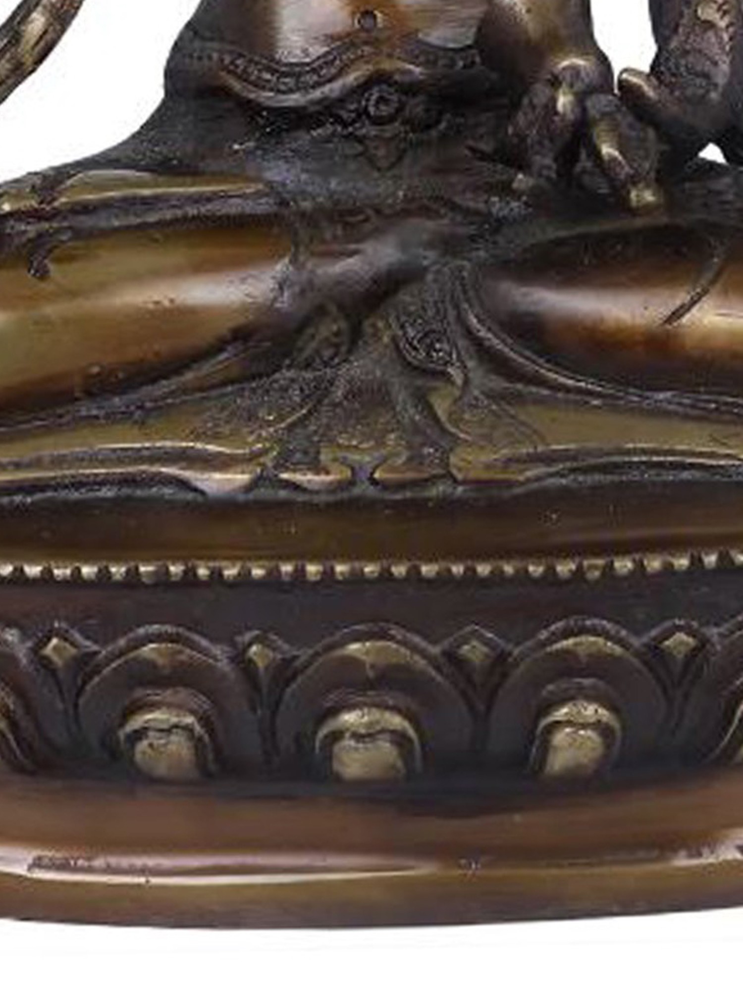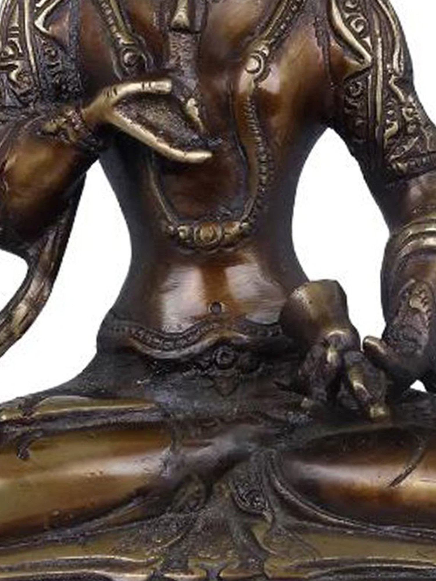 In the left hand resting on His lap is a handheld bell, while in the right which He raises to His breast is a vajra. The latter translates to thunderbolt or diamond: the name Vajrasattva translates to a being (‘sattva’) infused with the glamour of either.Bodhisattva Vajrasattva is clad in a dhoti that clings tightly to His slender limbs. A sea of sashes floats about Him, indicative of the ethereal winds that pervade His realm of existence. This figurine comes in a variety of coloured finishes, each of which is designed to infuse the space it is installed in with a distinct mood.
