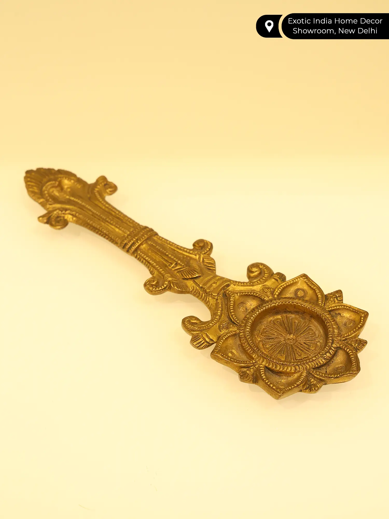 Elevate your spiritual practice and home décor with this exquisite brass Arti lamp. Handcrafted with meticulous attention to detail, this lamp is not merely a functional object but a work of art steeped in tradition and symbolism. The rich, warm tone of the brass lends an aura of timeless elegance, making it a stunning centerpiece for any sacred space or a sophisticated addition to your living area. Its intricate design evokes the beauty of sacred geometry and the divine feminine, inviting an atmosphere of peace and reverence.