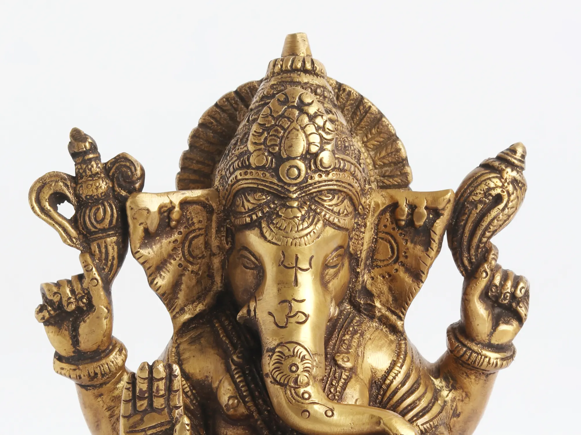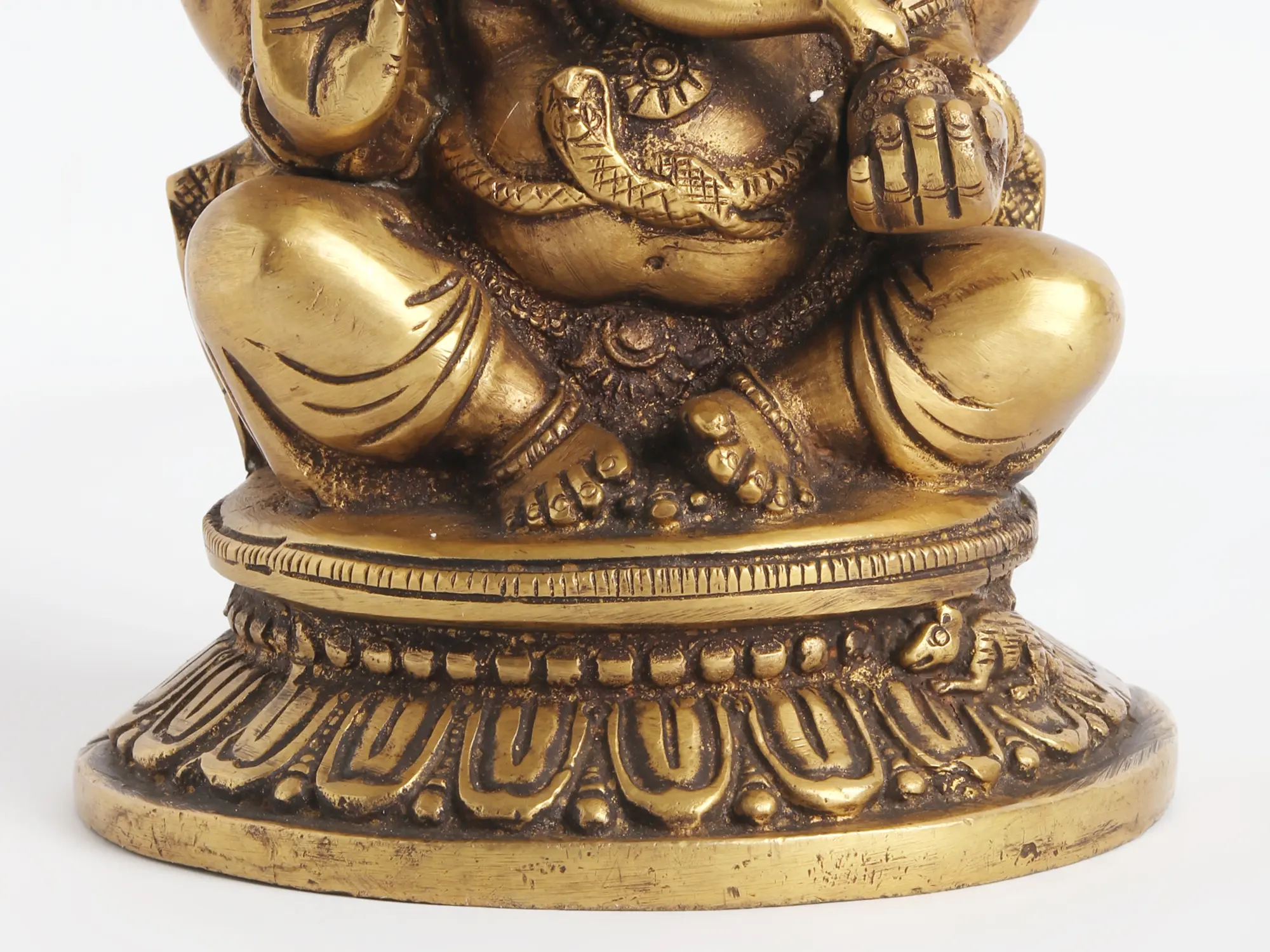Embrace blessings and protection with this handmade Brass Chaturbhuja Ganesha Idol. Crafted in India, this unique idol showcases Lord Ganesha in a posture of granting "Abhaya" or fearlessness. In Hindu philosophy, Ganesha is the remover of obstacles and the harbinger of success. The four arms symbolize his omnipresence, and the "Abhaya" gesture signifies divine protection. This brass idol is not just an exquisite piece of art but a profound representation of divine grace. Having this idol in your home ensures the removal of obstacles and the bestowing of blessings upon your endeavors. It serves as a reminder of the interconnectedness of grace and success in the grand cosmic design.