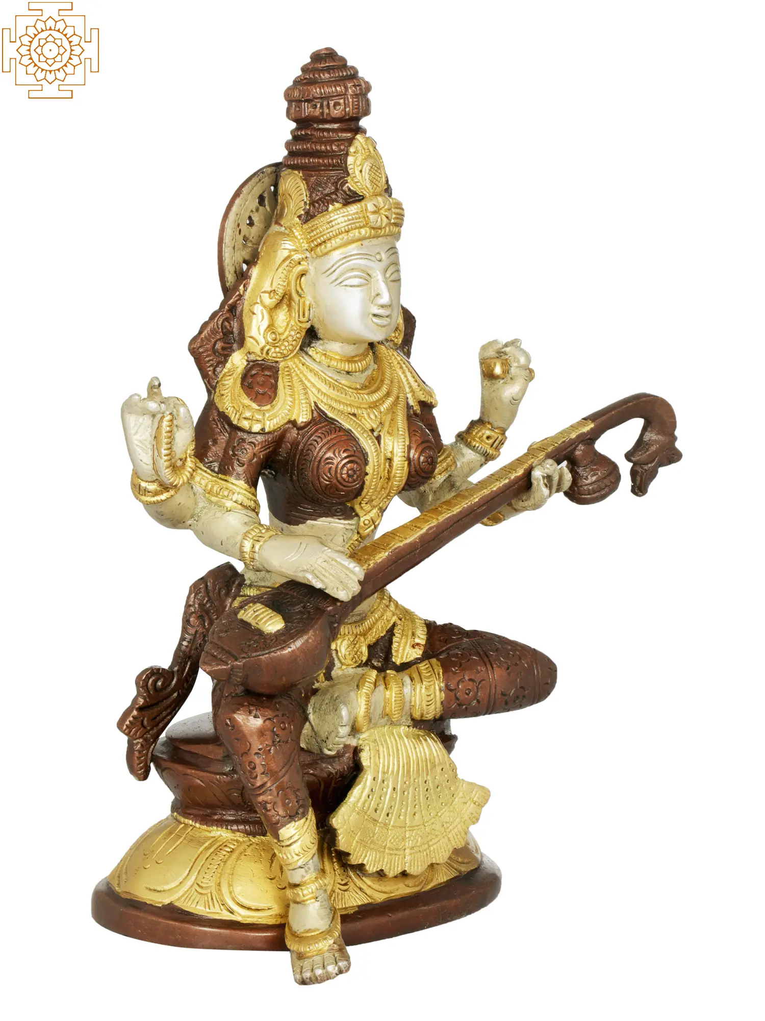 Invite the embodiment of wisdom and artistry into your home with this stunning handmade brass statue of Goddess Saraswati. Seated gracefully on a lotus, she represents the pursuit of knowledge and creative expression, a core principle in Hindu thought. This handcrafted piece radiates the elegance and enlightenment Saraswati embodies. Place it in your study or creative space to kindle your quest for wisdom and artistic inspiration.