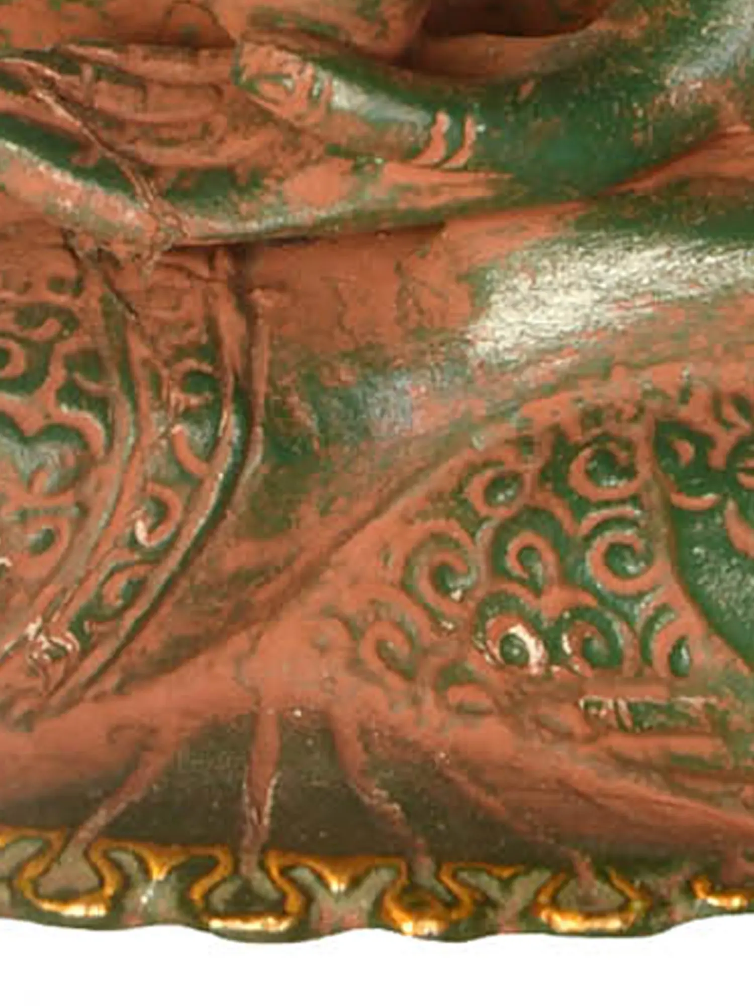 Immerse yourself in the serene aura of enlightenment with this exquisite brass sculpture of Lord Buddha in Bhumisparsha. The Earth Touching Gesture signifies the moment of Buddha's enlightenment under the Bodhi tree, when he called upon the Earth as his witness. The intricate carving on his robe showcases the profound craftsmanship and devotion of the artists. By placing this sculpture in your sacred space, you invite the essence of wisdom and compassion into your life. As you meditate upon it, contemplate the impermanence of all things and the path to inner peace that Buddha's teachings offer.