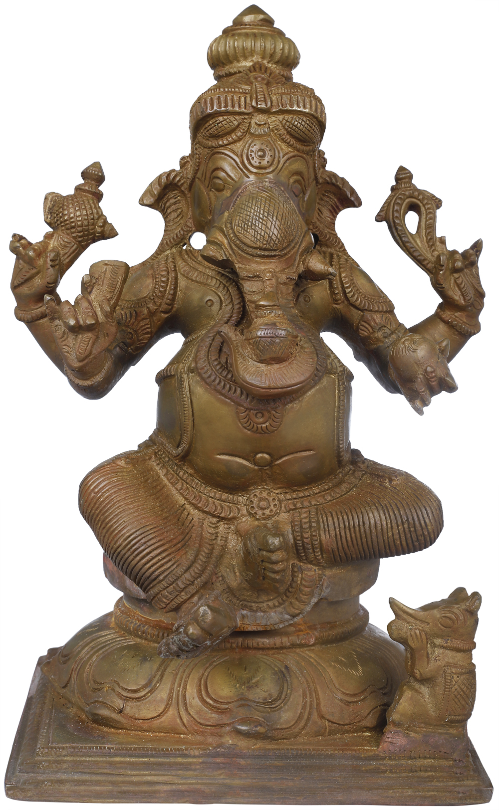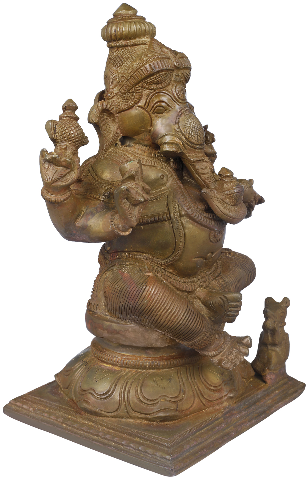 8" Brass Lord Ganesha Holding Kumbha in Trunk