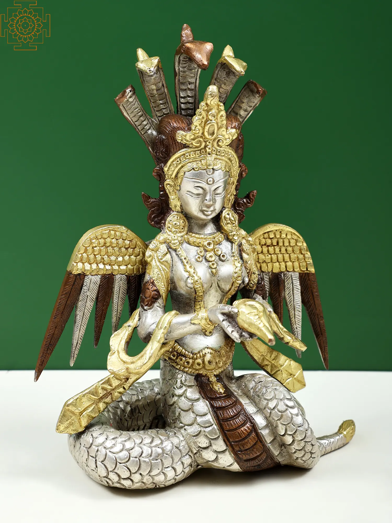 Discover the mystique of the Brass Naga Kanya, a symbol of fertility and protection in Indian and Southeast Asian mythology. In Hindu philosophy, the Naga Kanya represents the serpent spirit, which is revered for its transformative power. This handmade piece is a unique addition to your home, reminding you of the cyclical nature of life and the potential for rebirth and renewal. Place it in your space to harness the energy of transformation and protection.