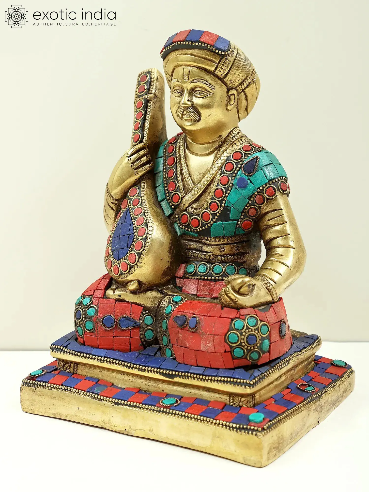 8" Brass Sant Tukaram Maharaj Statue with Inlay Work