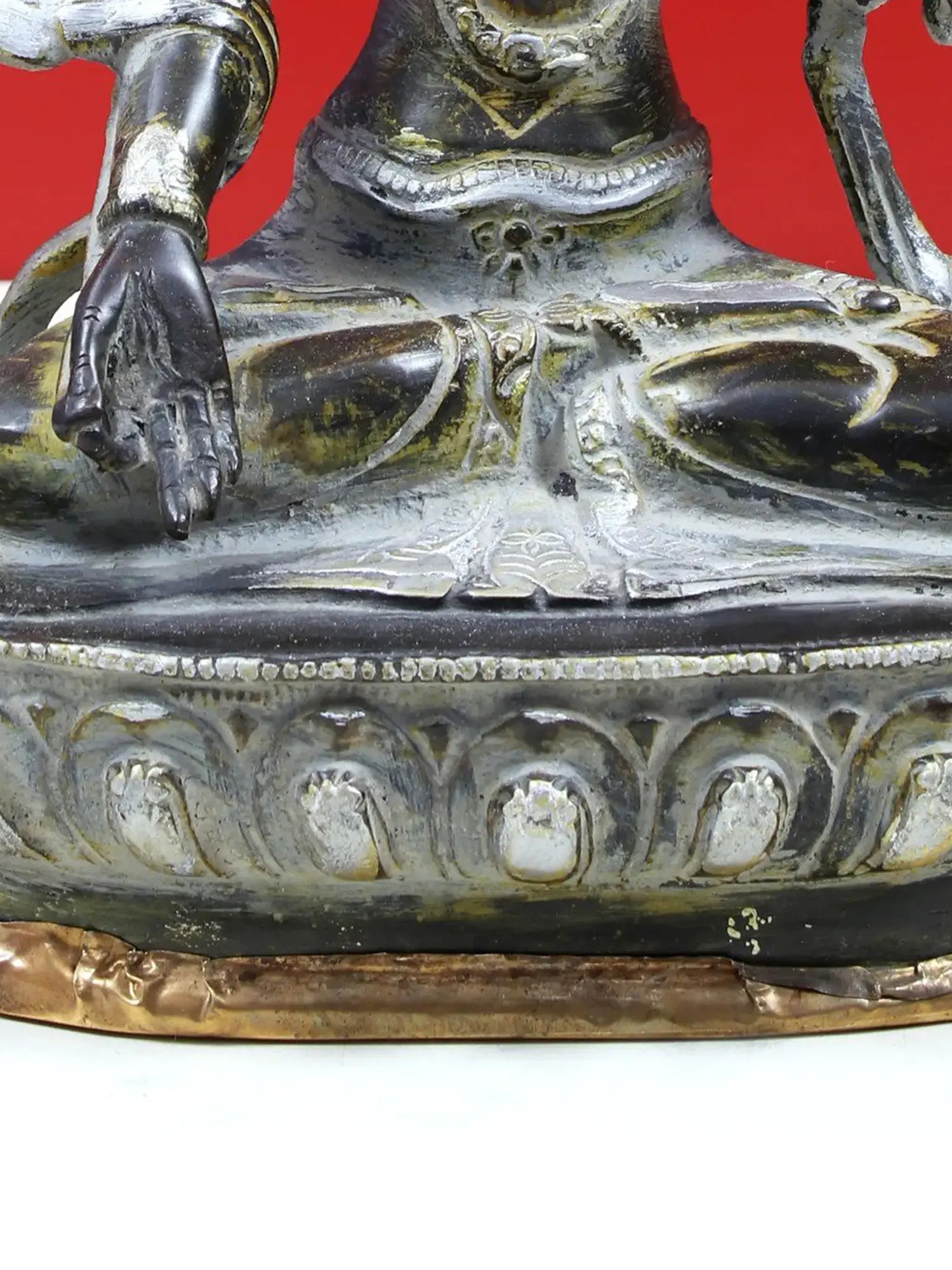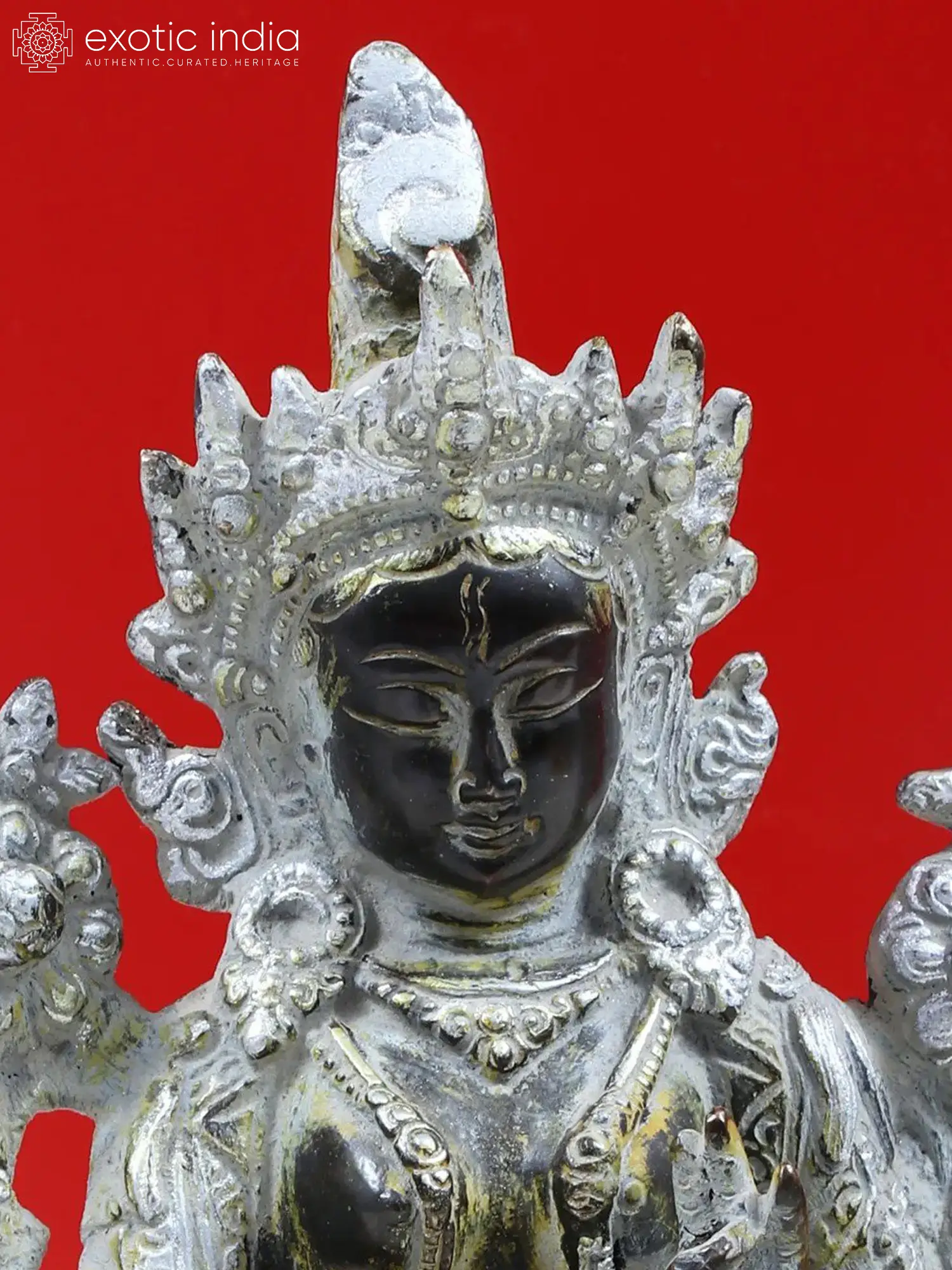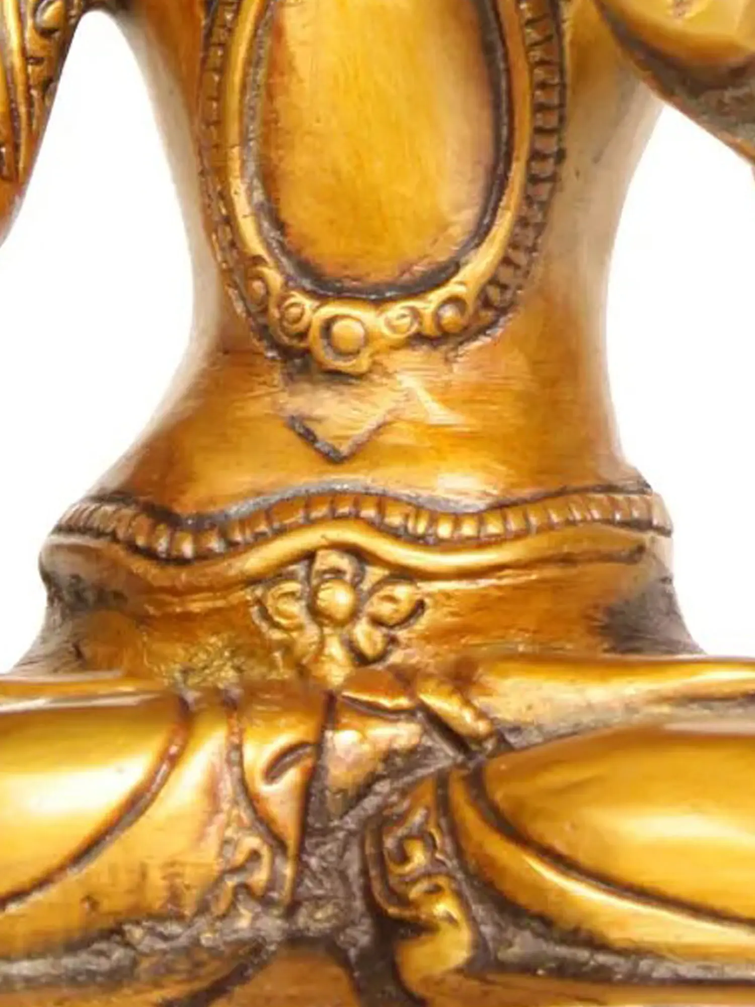 White Tara, a revered bodhisattva in Buddhism, embodies boundless compassion and healing. She is depicted with a serene expression, having seven eyes to perceive suffering in all directions. White Tara's right hand extends in a gesture of granting blessings, and she holds a white lotus symbolizing purity, while her left-hand cradles a crystal mala representing spiritual practice. Devotees recite her mantra for healing and longevity, seeking her compassionate guidance during physical or spiritual challenges. White Tara stands as a symbol of solace, protection, and well-being, embodying the compassionate aspect of enlightenment, especially in Tibetan Buddhism.