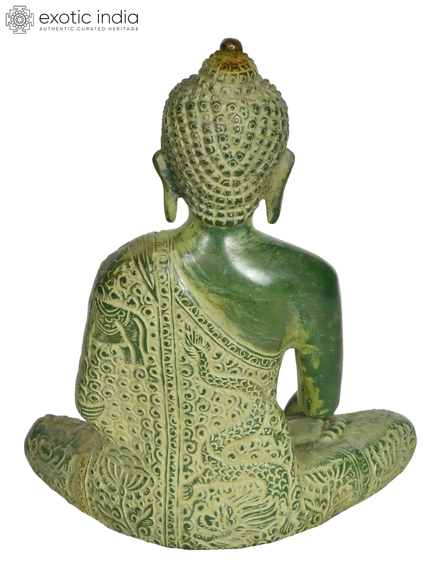 More than just a decorative object, this statue serves as a potent reminder of the Buddha's teachings and the path to enlightenment. Placing it in your home or meditation space can foster an atmosphere of calm, mindfulness, and spiritual introspection. The Bhumi-Sparsha Mudra specifically encourages us to stand firm in our convictions, to draw strength from our own inner resolve, and to acknowledge the grounding presence of the earth beneath us. It is a powerful symbol for anyone seeking to overcome challenges, find inner strength, and cultivate a deeper connection to their spiritual journey. This handcrafted masterpiece, originating from the sacred soil of India, brings not just artistic beauty but also a profound spiritual essence into your living space.