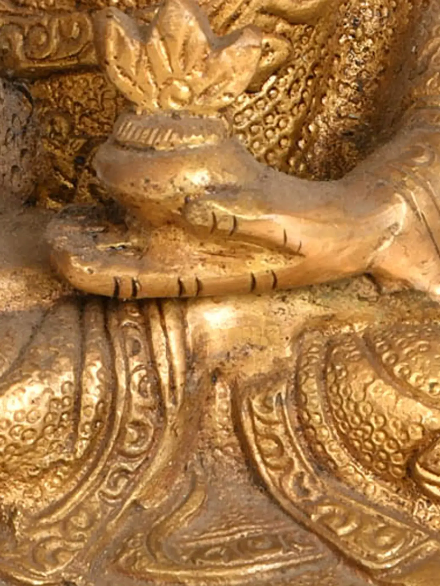 Enrich your spiritual sanctuary with the teachings of the Preaching Buddha, a Tibetan Buddhist deity, presented in this beautifully carved brass statue. The intricately detailed robe symbolises humility and mindfulness, reflecting the importance of compassion in Buddhist philosophy. This statue conveys the timeless wisdom and grace of the Buddha as He imparts His teachings to the world. It serves as a reminder of the path to enlightenment and the significance of sharing spiritual knowledge. Place this masterpiece in your home and immerse yourself in the serenity and enlightenment that the Preaching Buddha brings.