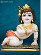 12" Idol Of Bal Krishna Holding Butter In Hand | Super White Makrana Marble Statue