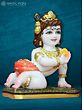 8" Colorful Statue Of Bal Gopal | Super White Makrana Marble Statue