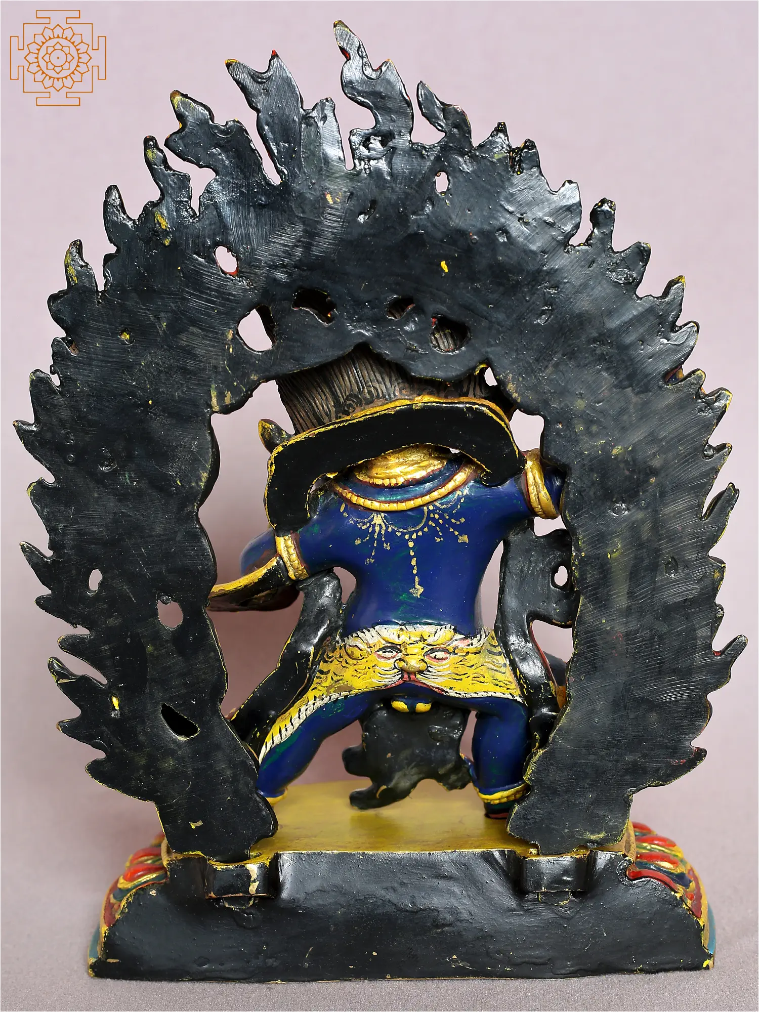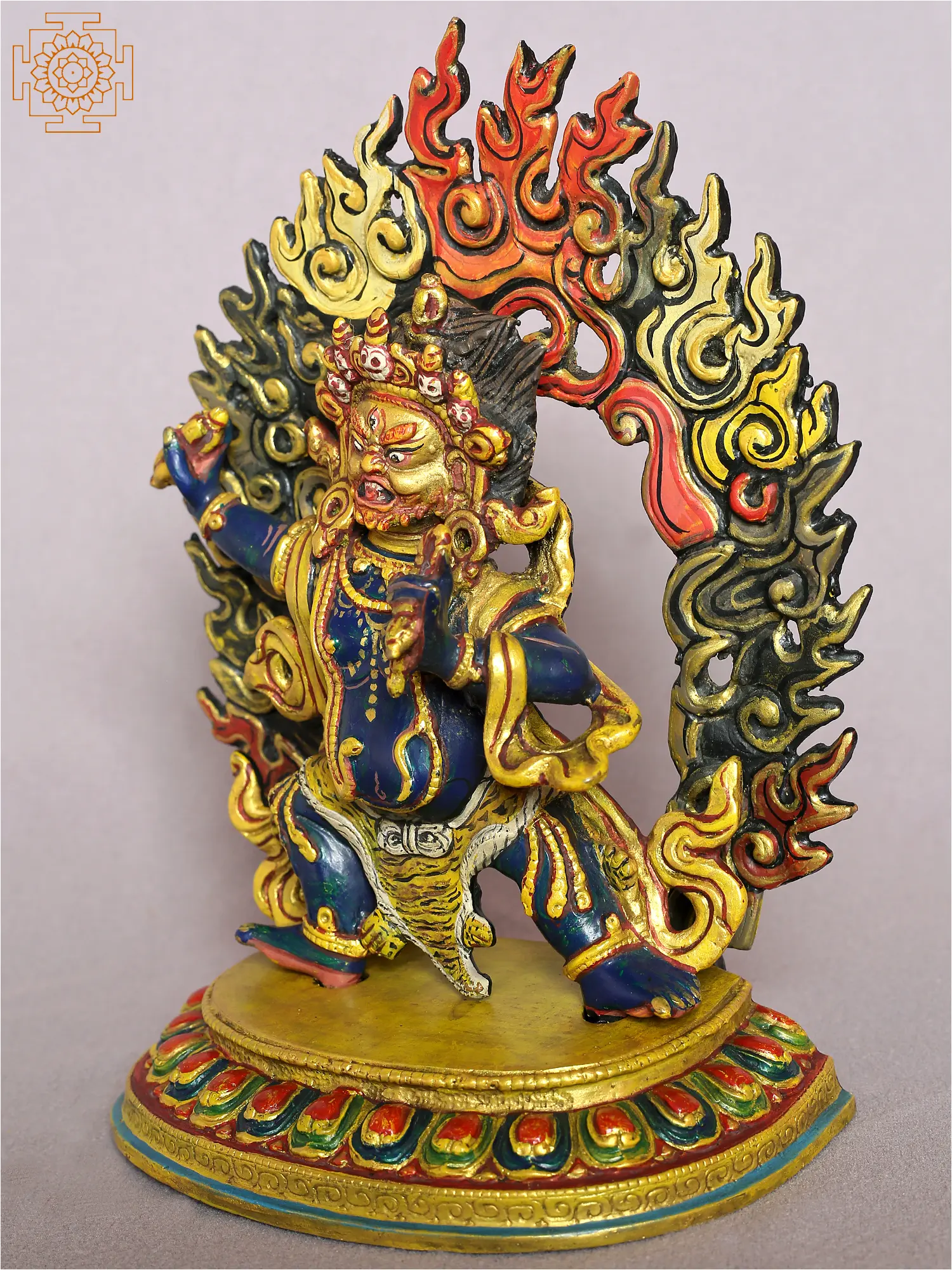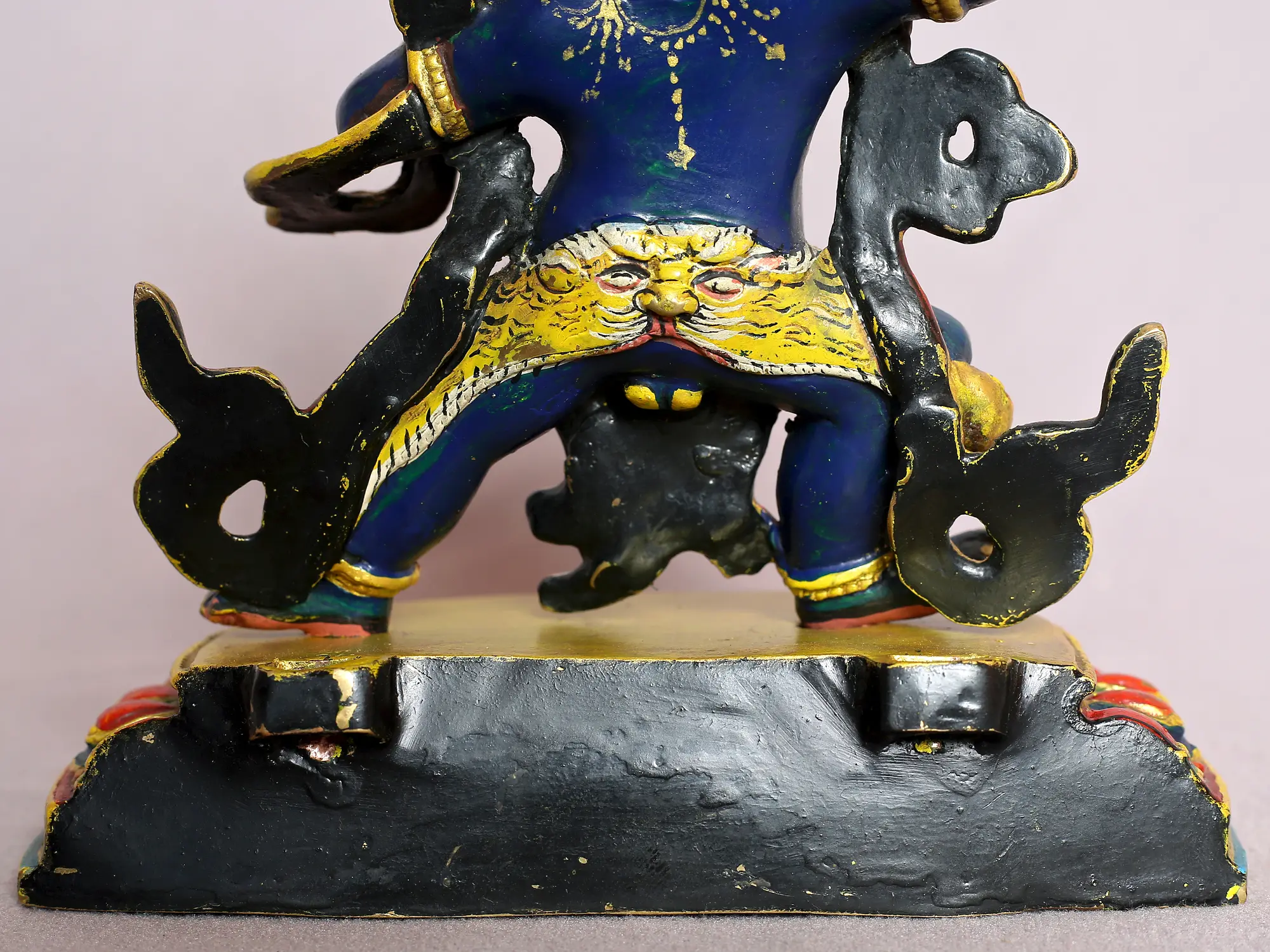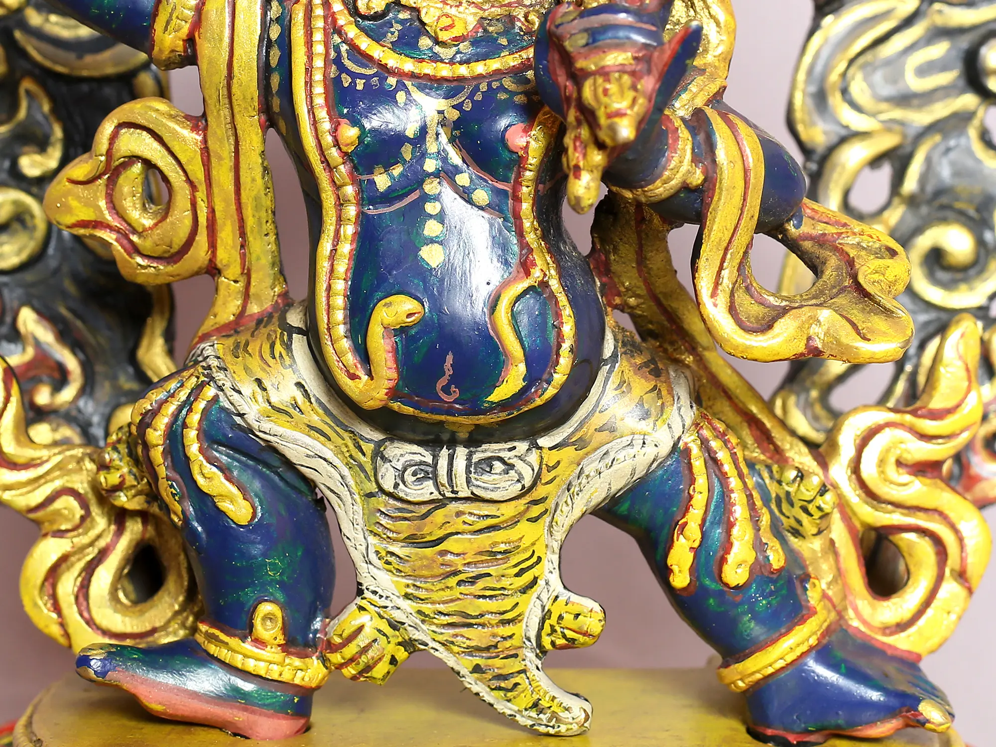 Depicted as a powerful and wrathful figure, Vajrapani is often depicted holding a vajra in one hand, symbolizing indestructible spiritual power. His other hand may display a threatening gesture (tarjani mudra), representing the dispelling of fear and obstacles.