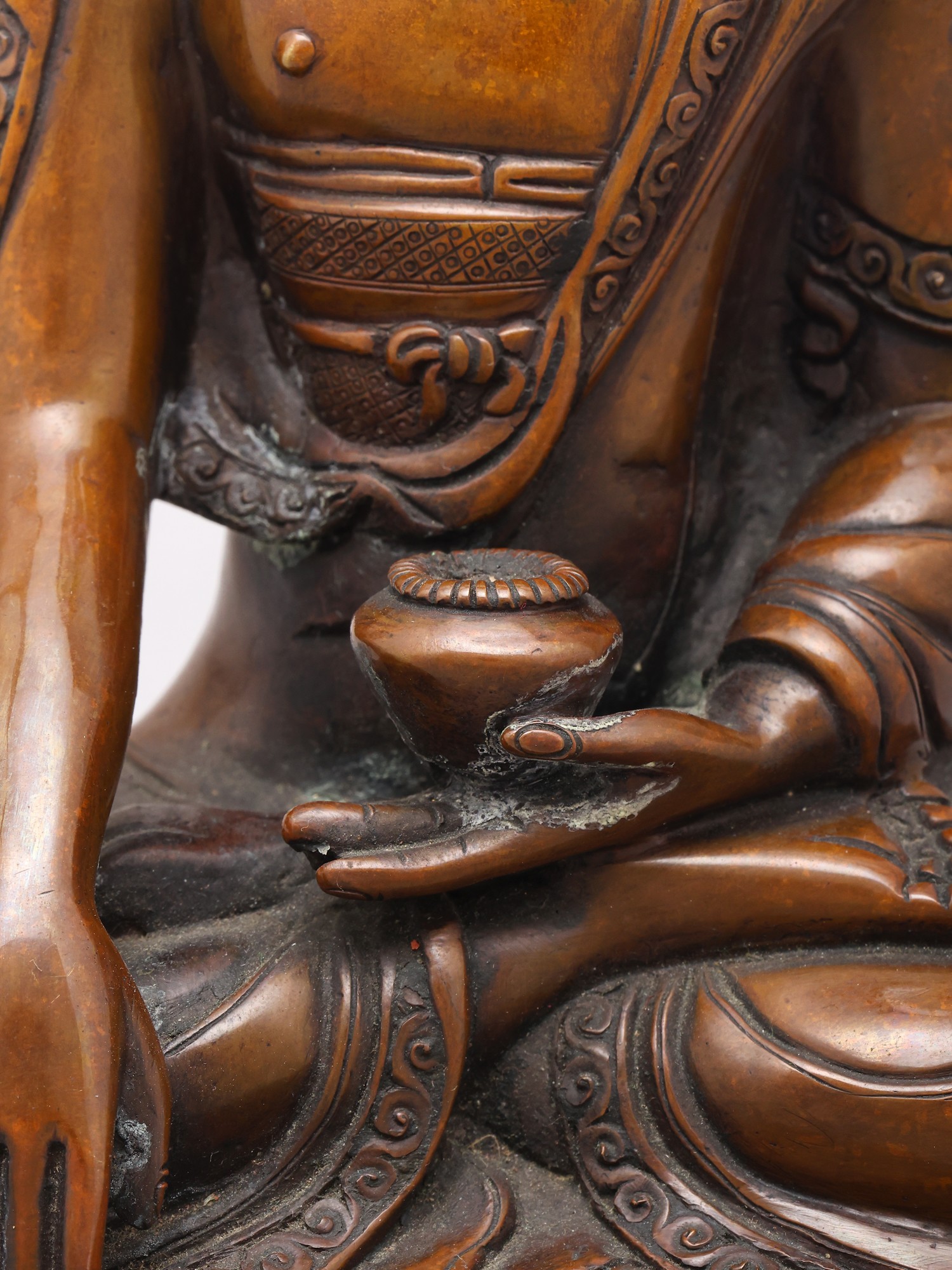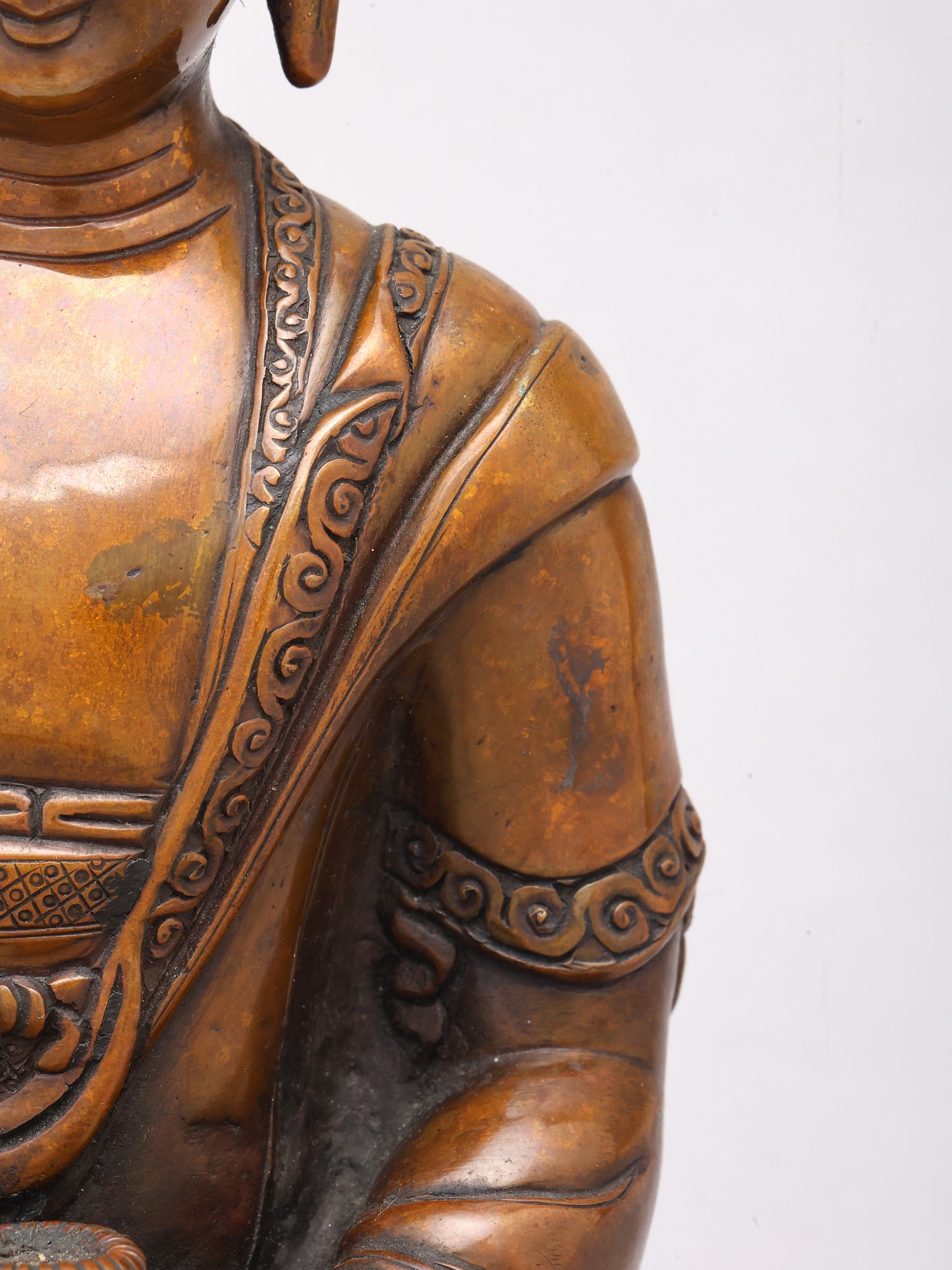 With the finesse of Nepalese aesthetics, the statue thus condenses a profound moment of Buddhist tradition in metal.