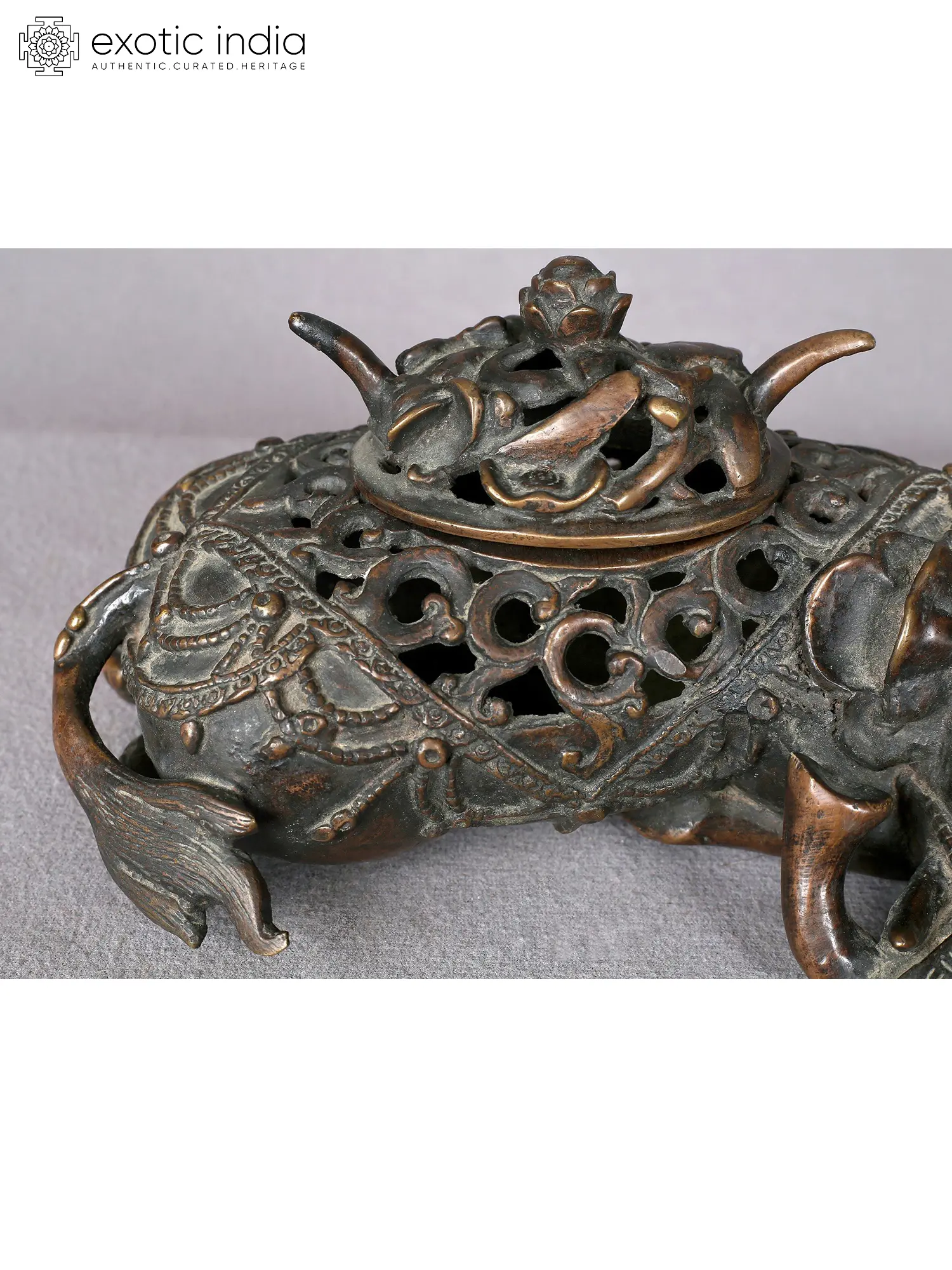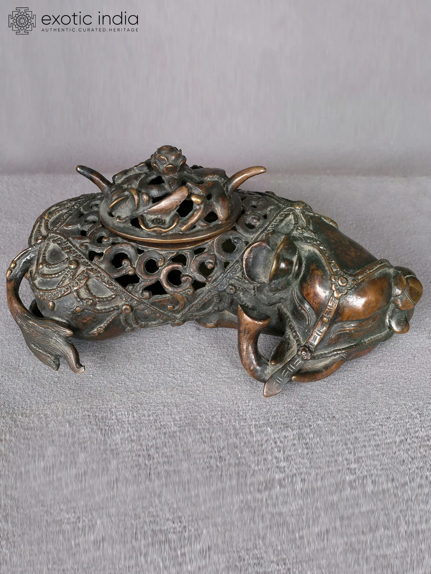 The beautiful patina tint of the Elephant Incense Burner lends it an antique charm, making it appear as if it is a relic from a bygone era. This nuanced approach to design creates a bridge between cultures and historical periods, making the incense burner a captivating piece that resonates with both artistic appreciation and cultural significance.