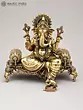 9" Lord Ganesha Brass Statue Playing Veena | Handmade | Made In India