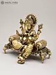 6" Small Four Armed Sitting Lord Ganesha | Brass Statue with Inlay Work