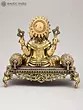 22" Sitting Chaturbhuja Lord Ganesha in Blessing Gesture | Brass Statue with Inlay Work