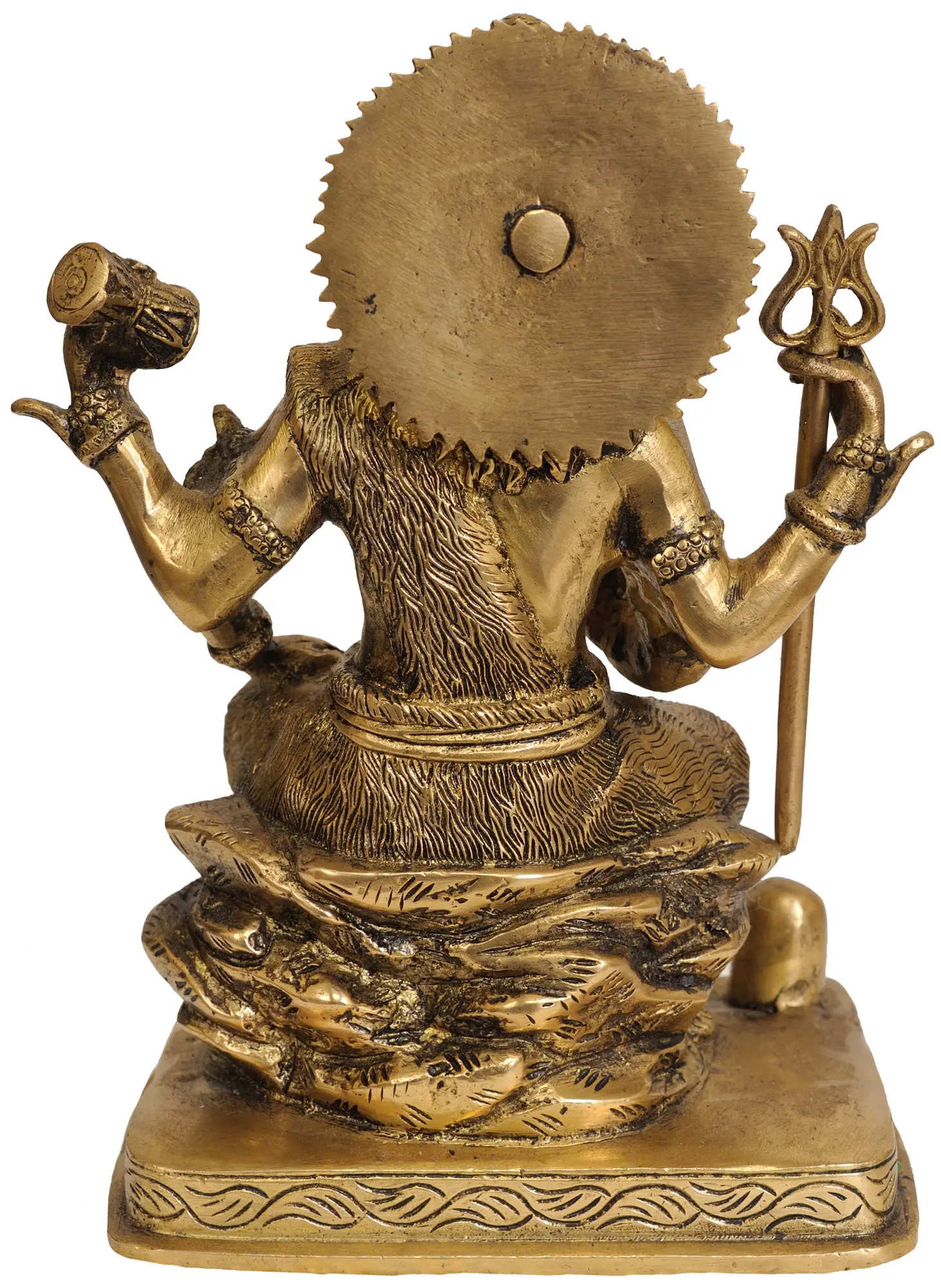Embrace the mystical presence of Lord Shiva in his four-armed form, gracefully cradling a Shiva Linga and Kamandalu, with this exquisite brass sculpture. Handmade with precision and devotion in India, this artwork captures the essence of Shiva's meditative and benevolent persona. Lord Shiva, the Lord of Destruction and Transformation, is often depicted in his tranquil meditation. This sculpture showcases Shiva in his divine form, adorned with sacred items that symbolise creation and preservation. The intricate details, from his serene expression to the sacred objects in his hands, reflect the artisan's unwavering dedication. The presence of Lord Shiva in this form signifies inner peace, the union of opposites, and the power of transformation. Having this brass sculpture is like having a spiritual guide in your living space, radiating the energy of inner calm, balance, and spiritual evolution.