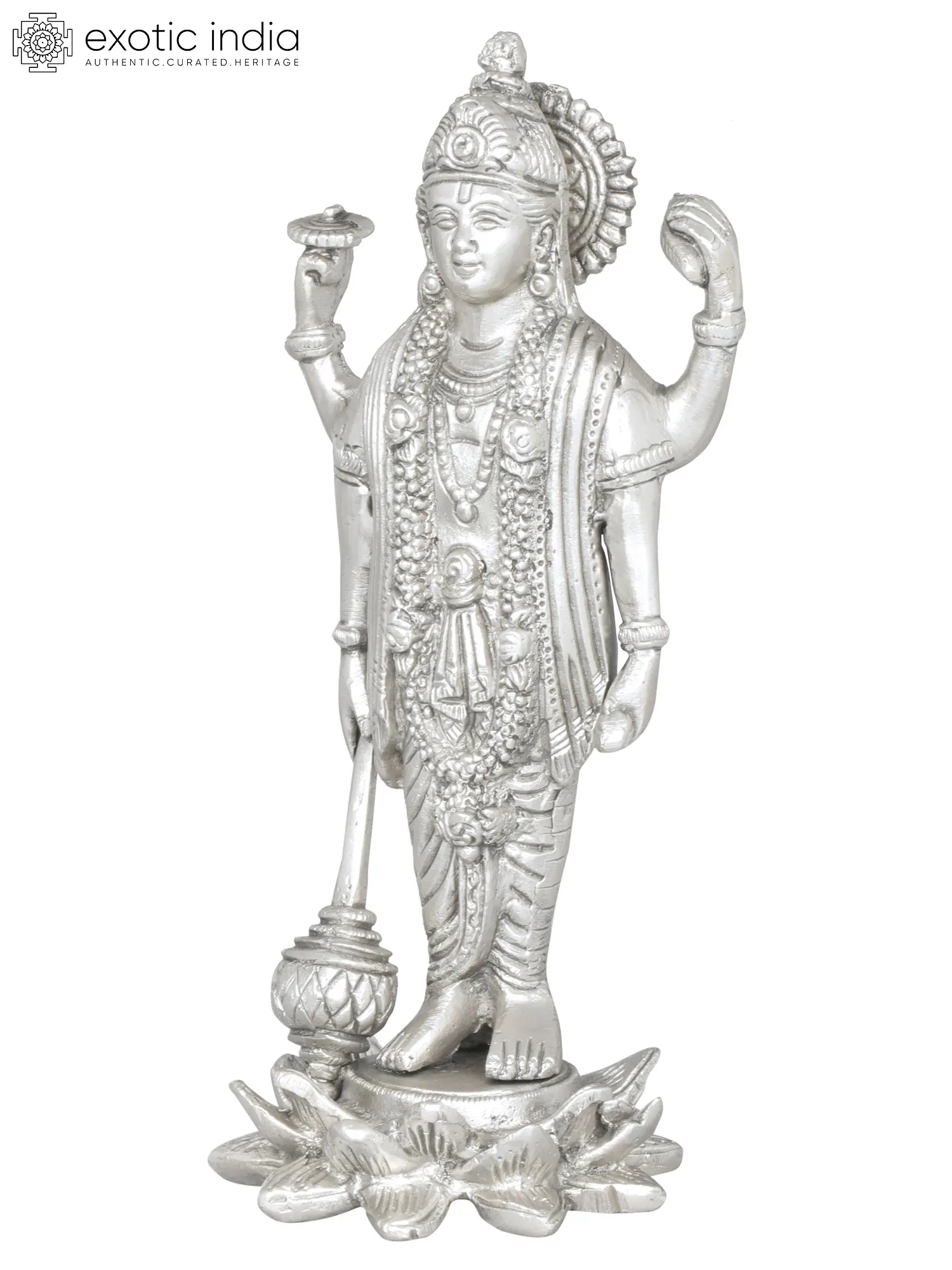 The portrayal of Chaturbhuja Swami Vishnu in brass signifies the omnipresent nature and divine power of Vishnu. This sculpture captures the four-armed form of Vishnu, symbolising his omnipresence and cosmic influence. The intricate details within this sculpture foster an ambiance of divine presence and power, encouraging viewers to reflect on the cosmic influence and the omnipresence of Swami Vishnu. Each detail invites contemplation on the all-pervading nature and the cosmic influence of Lord Vishnu, creating an ambiance of divine omnipresence and influence.