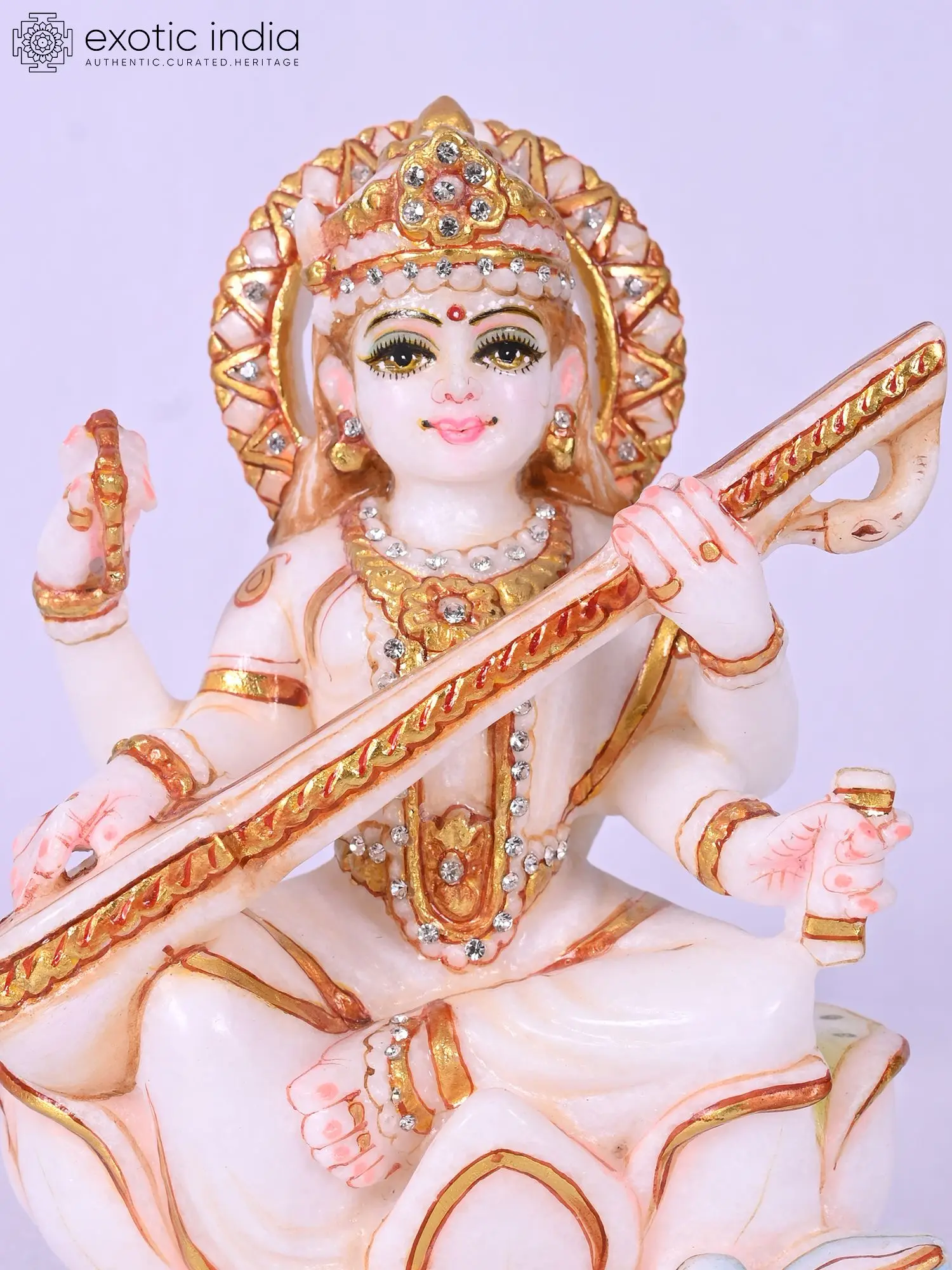 14" Goddess Saraswati Marble Statue