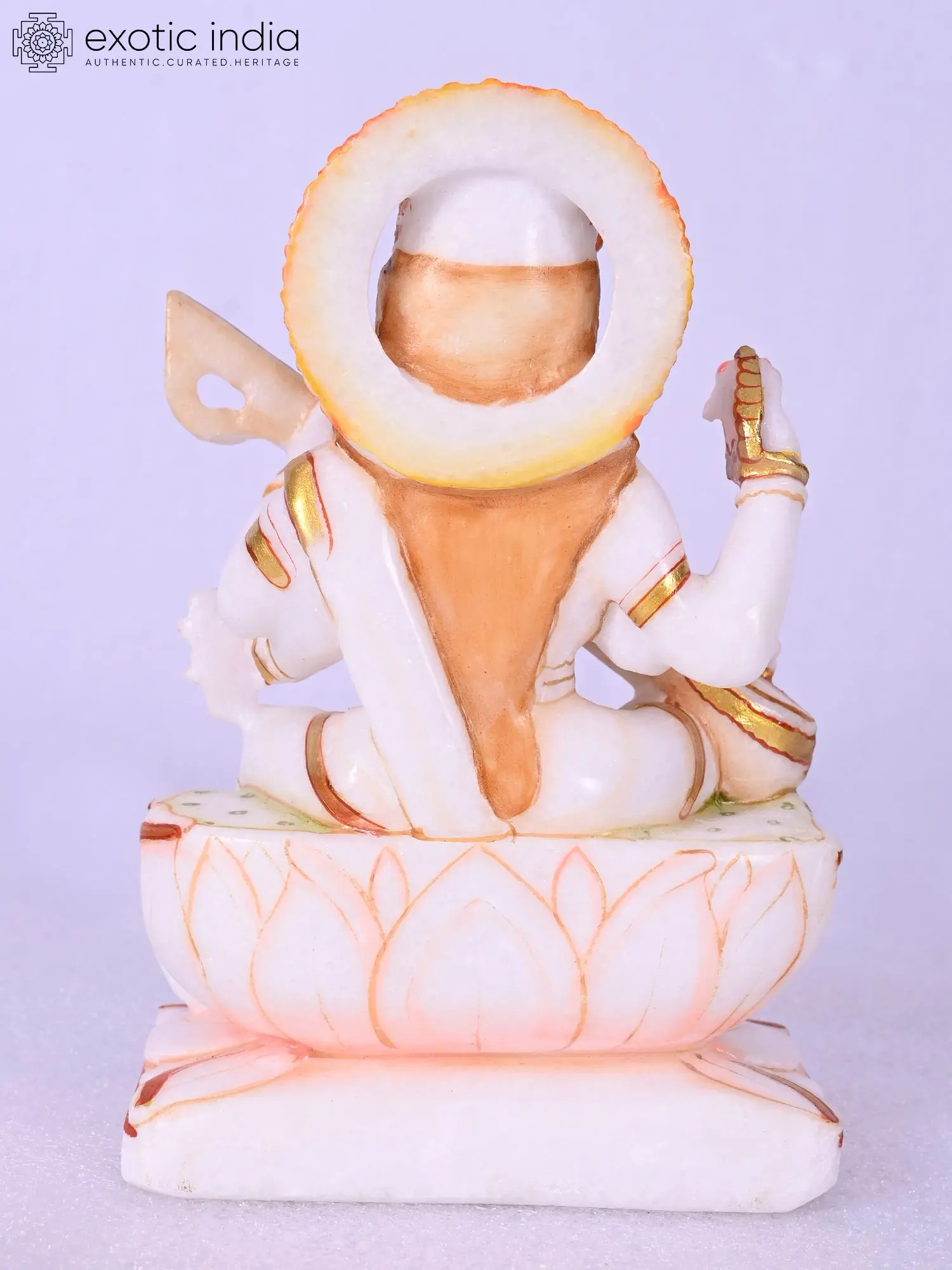 12" Goddess Saraswati Statue Seated in Lalitasana on Lotus Throne | Handmade | Made in India