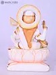 Hand-carved from the finest quality marble, this divine figure is a testament to centuries of Indian sculptural tradition. Each detail, from the gentle curve of her serene smile to the intricate folds of her celestial garments, is meticulously sculpted by skilled artisans. The stone's natural luminosity is enhanced by subtle, hand-painted accents and shimmering embellishments, creating a piece that feels both grounded in earth and touched by the divine.