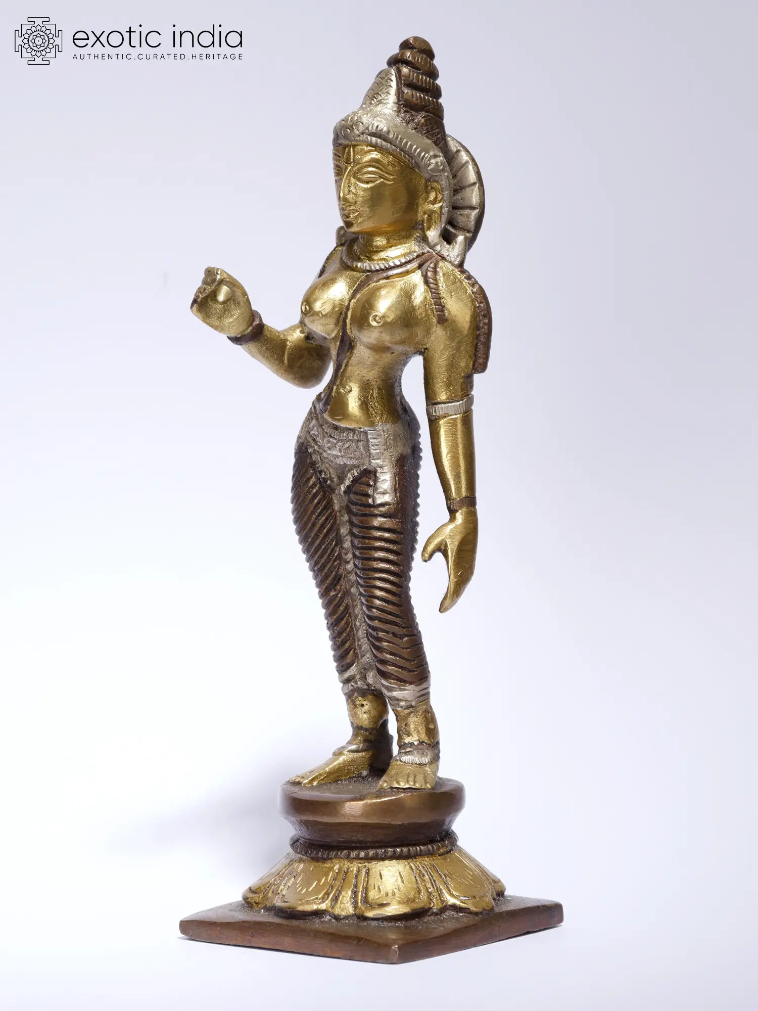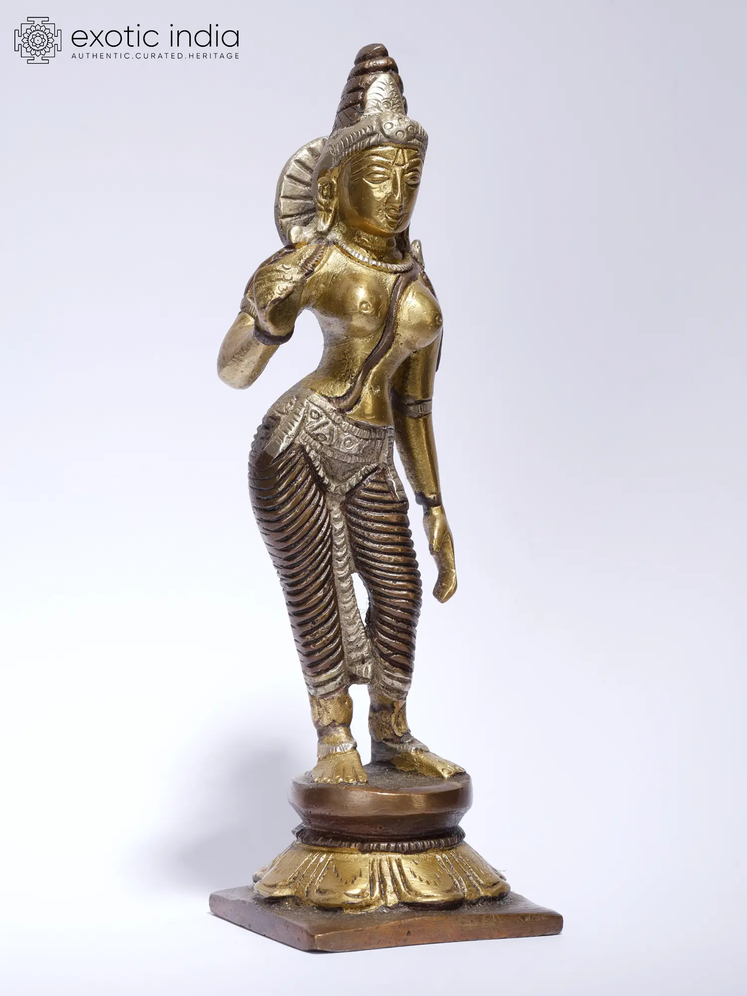 8" Seated Uma | Uma is used for Sati (Shiva's first wife, who is reborn as Parvati) | Brass Statue | Handmade | Made In India