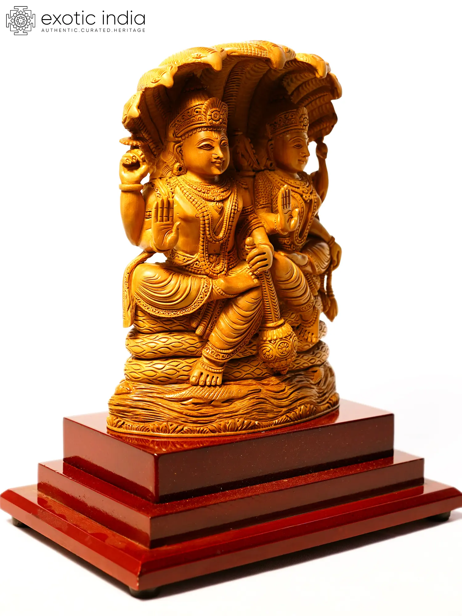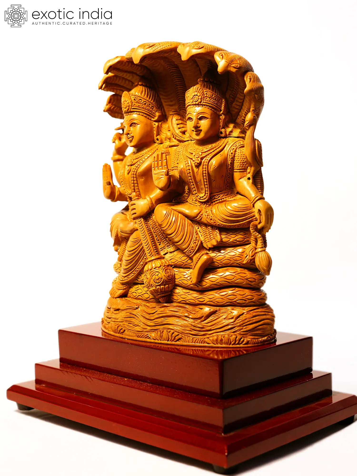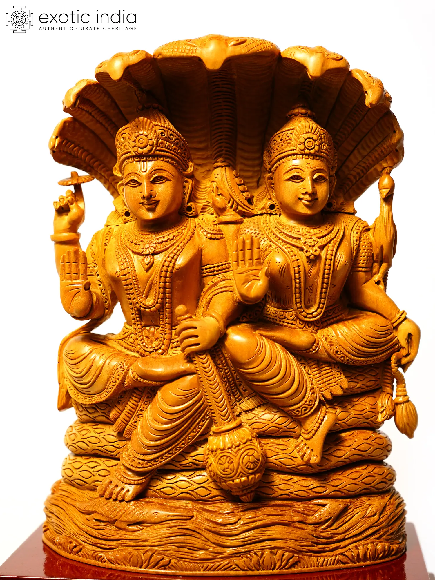 13" Devi Lakshmi Seated on Kirtimukha Throne | Sandalwood Carved Statue