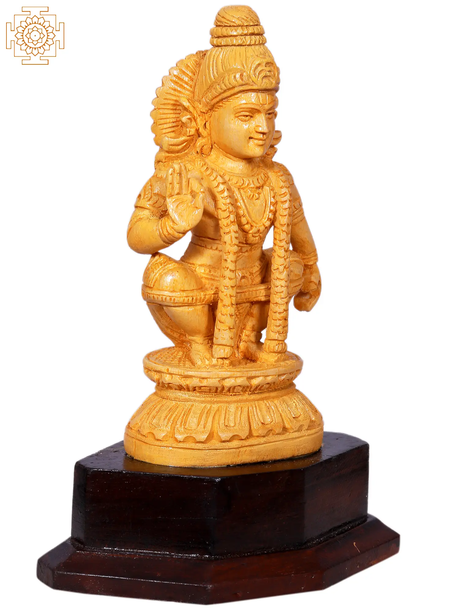 A Divine Presence: Lord Ayyappan in Exquisite Wooden Carving