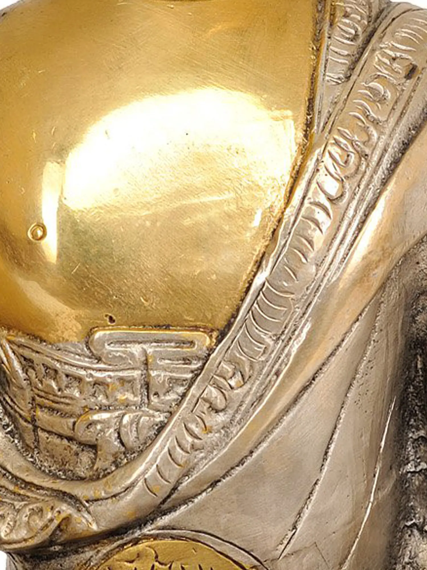 This exquisite brass statue captures Lord Buddha in a moment of profound meditative stillness, embodying the pivotal "Earth Witness" gesture, known as the Bhumisparsha Mudra. Seated in the traditional lotus posture, his serene countenance, with eyes gently closed, invites contemplation and inner peace. The meticulous craftsmanship, evident in every detail from the undulating folds of his robe to the delicate carvings on his shoulders, speaks to the rich heritage of Indian artistry.
