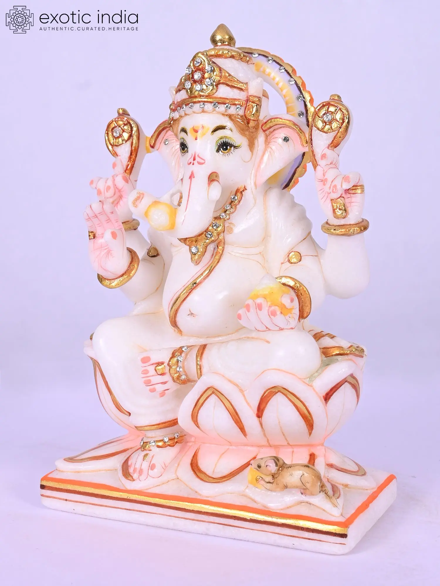 Four Armed Ganesha Marble Sculpture | 18 Inches
