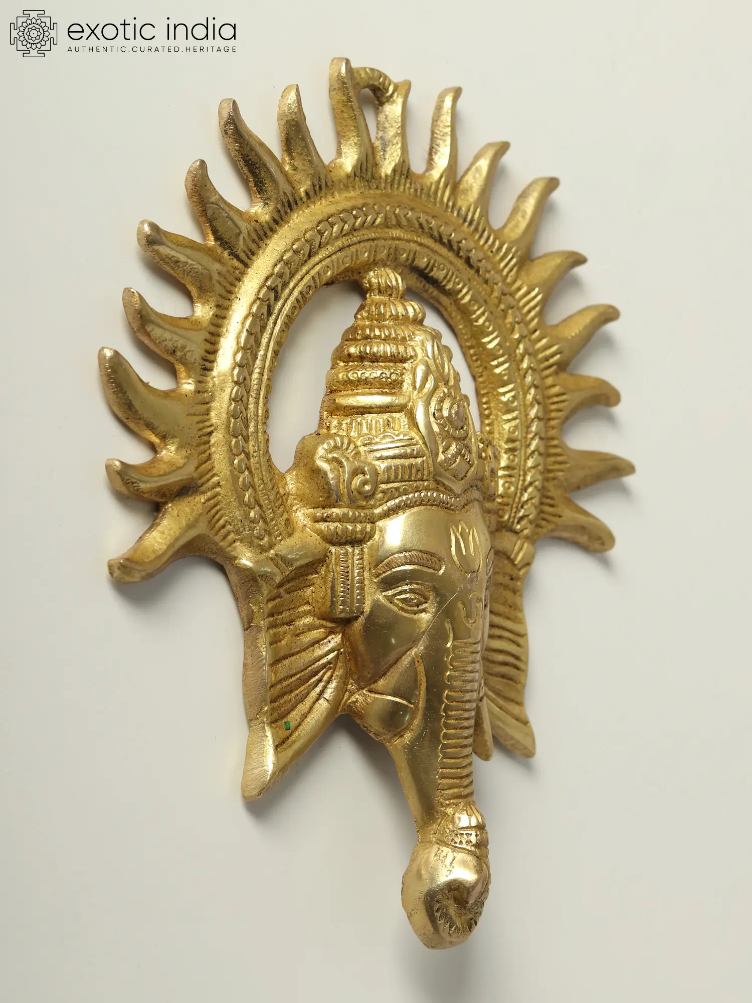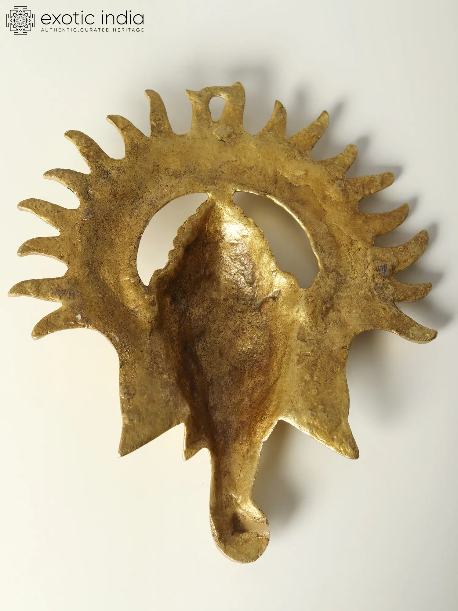 Lord Ganesha is the remover of Vipatti or problems and is the patron of Gyan or wisdom. He is also a sacred image along with Goddess Lakshmi and they both signify Shubh-Labh. This Lord Ganesha Face Wall Hanging Statue in Brass is a form of home decor that is also sacred art and helps bring the blessings of Lord Ganesha into the beholder's home. The brass construction radiates elegance, symbolizing strength and longevity. The wall-hanging design adds a touch of spiritual ambiance to any room, creating a sacred focal point. With intricate detailing, Ganesha's face exudes tranquility the agni halo behind his head is the symbol of his control over light that ultimately provides knowledge.