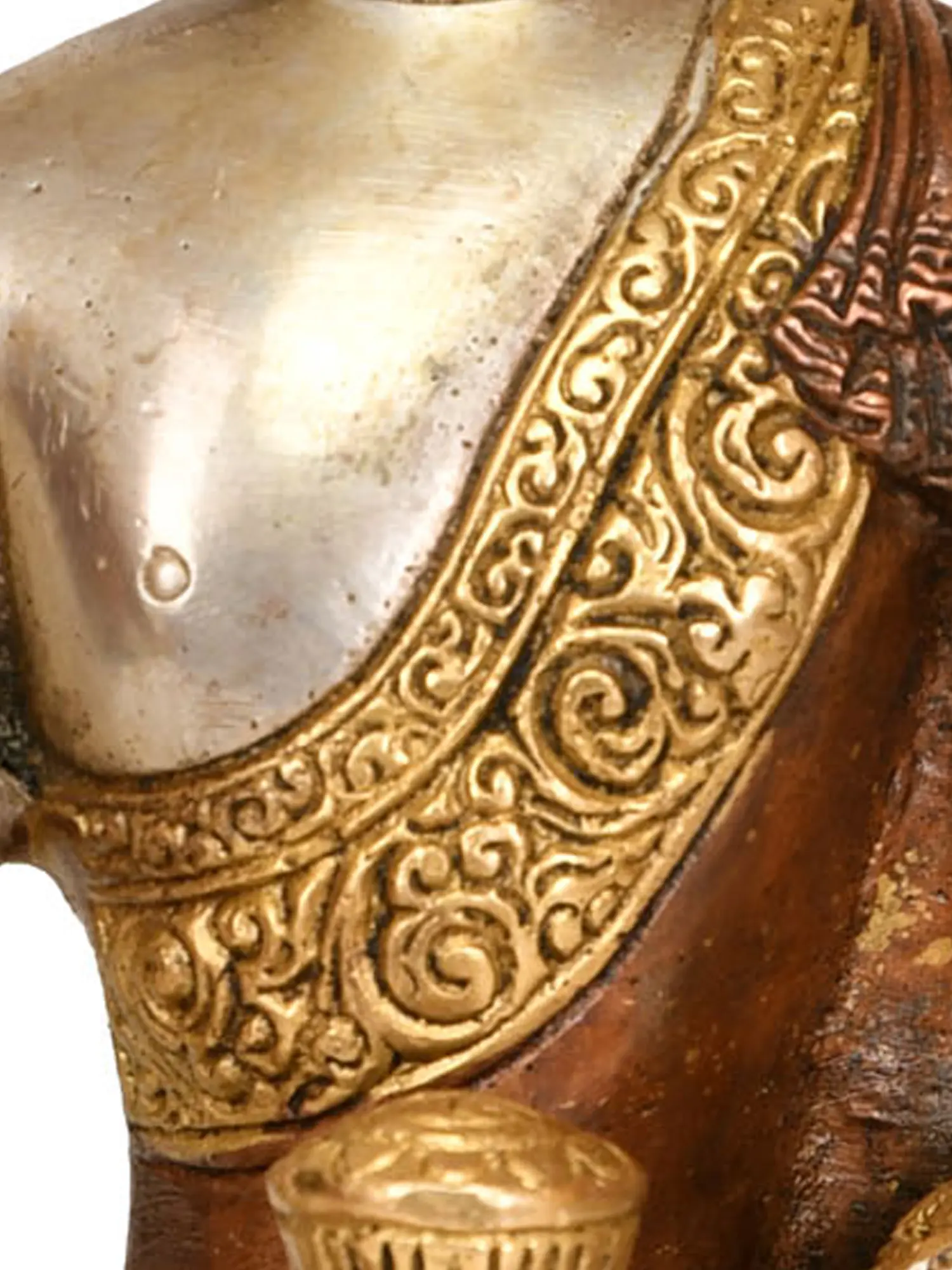 8" Meditating Lord Buddha with Pindapatra -Tibetan Buddhist In Brass | Handmade | Made In India