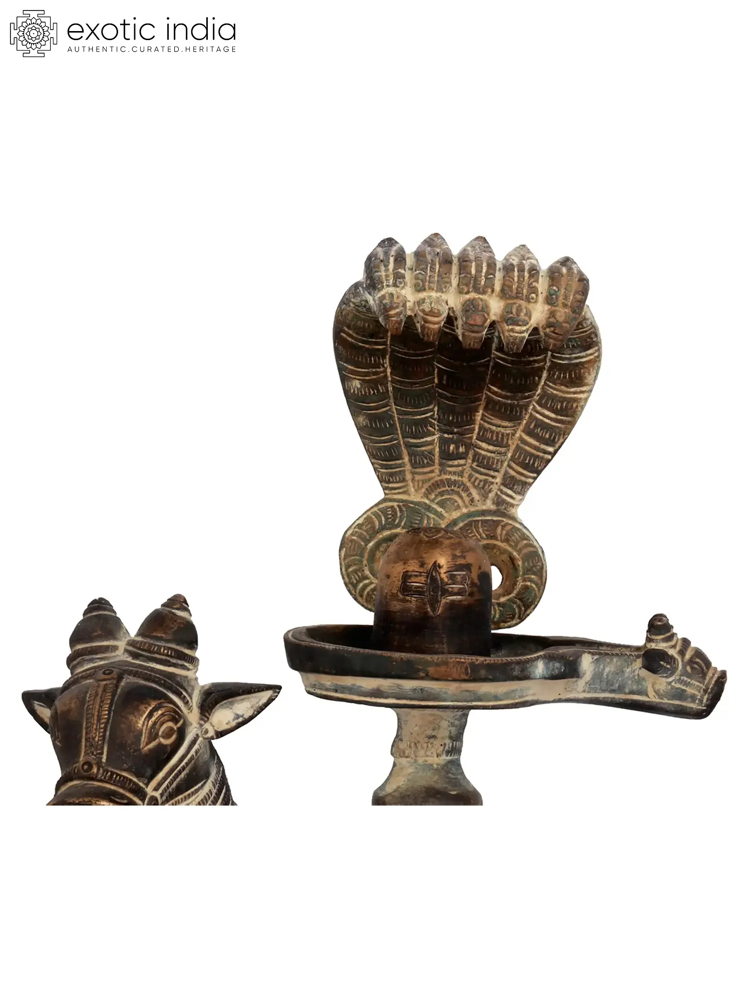 This Nandi for Abhisheka with Shiva Linga in Brass is a sacred piece, a representation of devotion and reverence. Handcrafted in India, it embodies the guardian spirit of Lord Shiva. As you perform Abhisheka rituals with this exquisite piece, may it help you connect with the divine and experience the grace and blessings of the Almighty. Let it be a source of strength and spiritual guidance in your life.