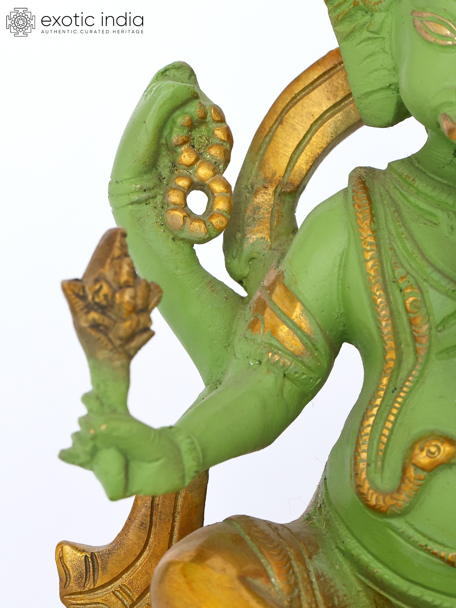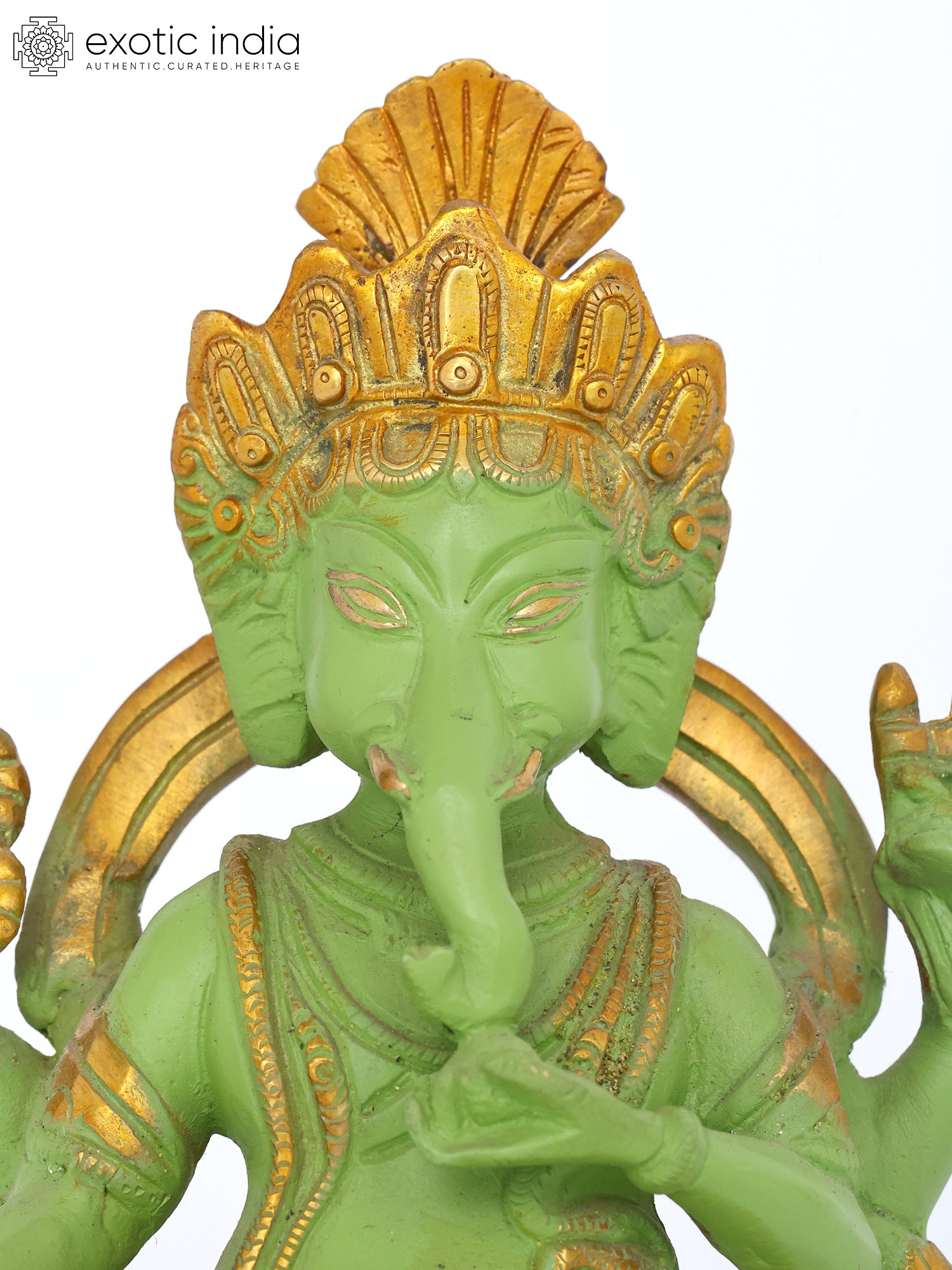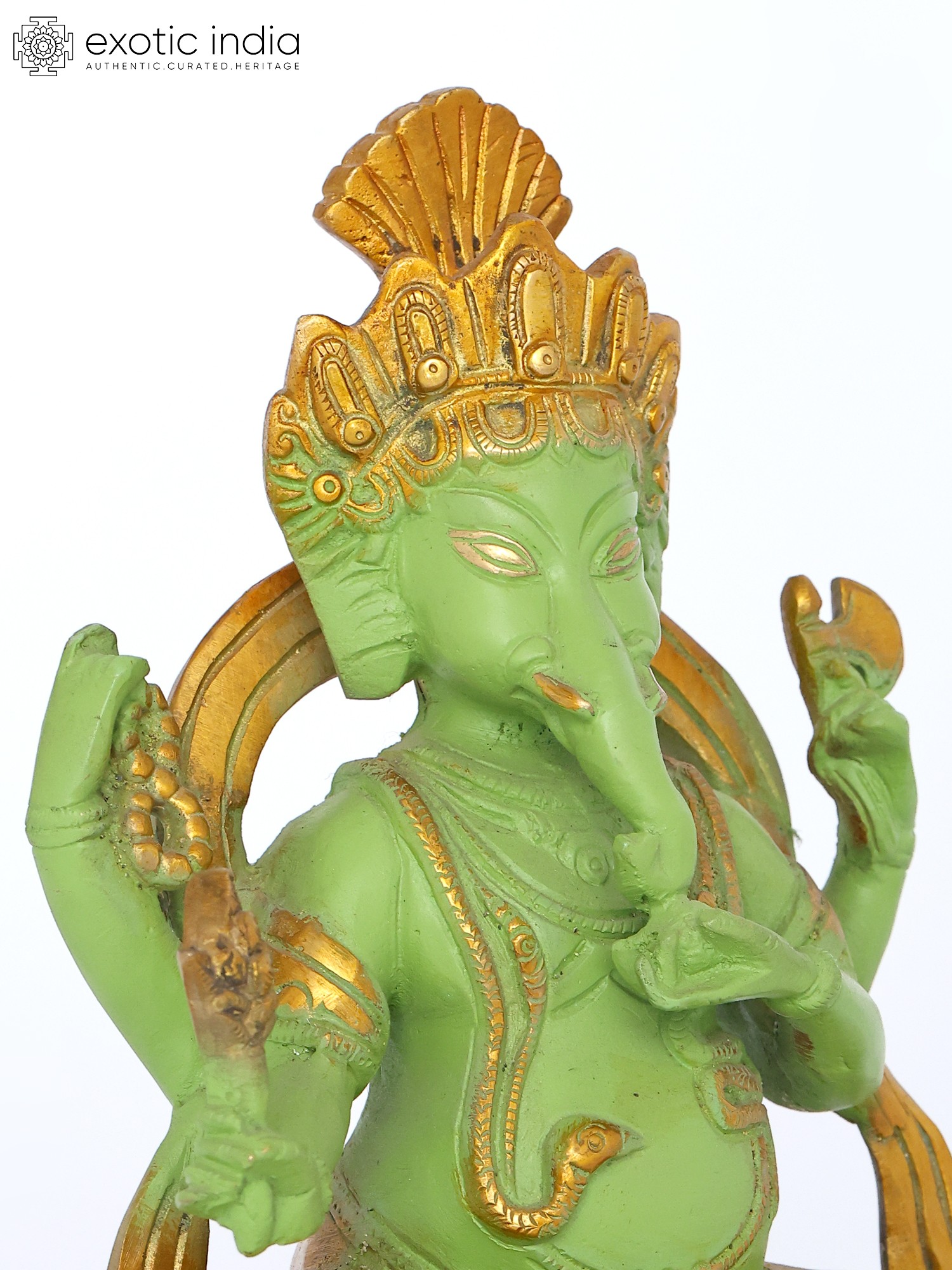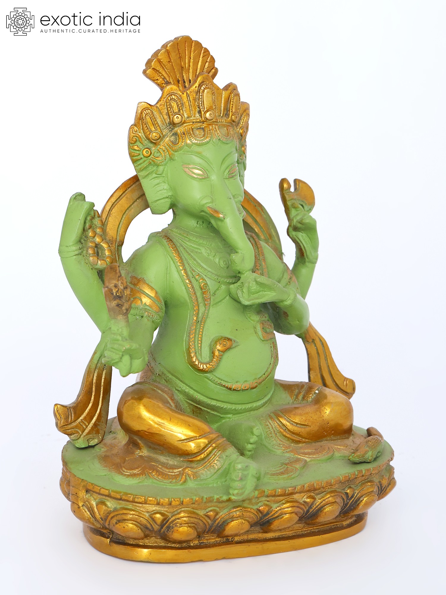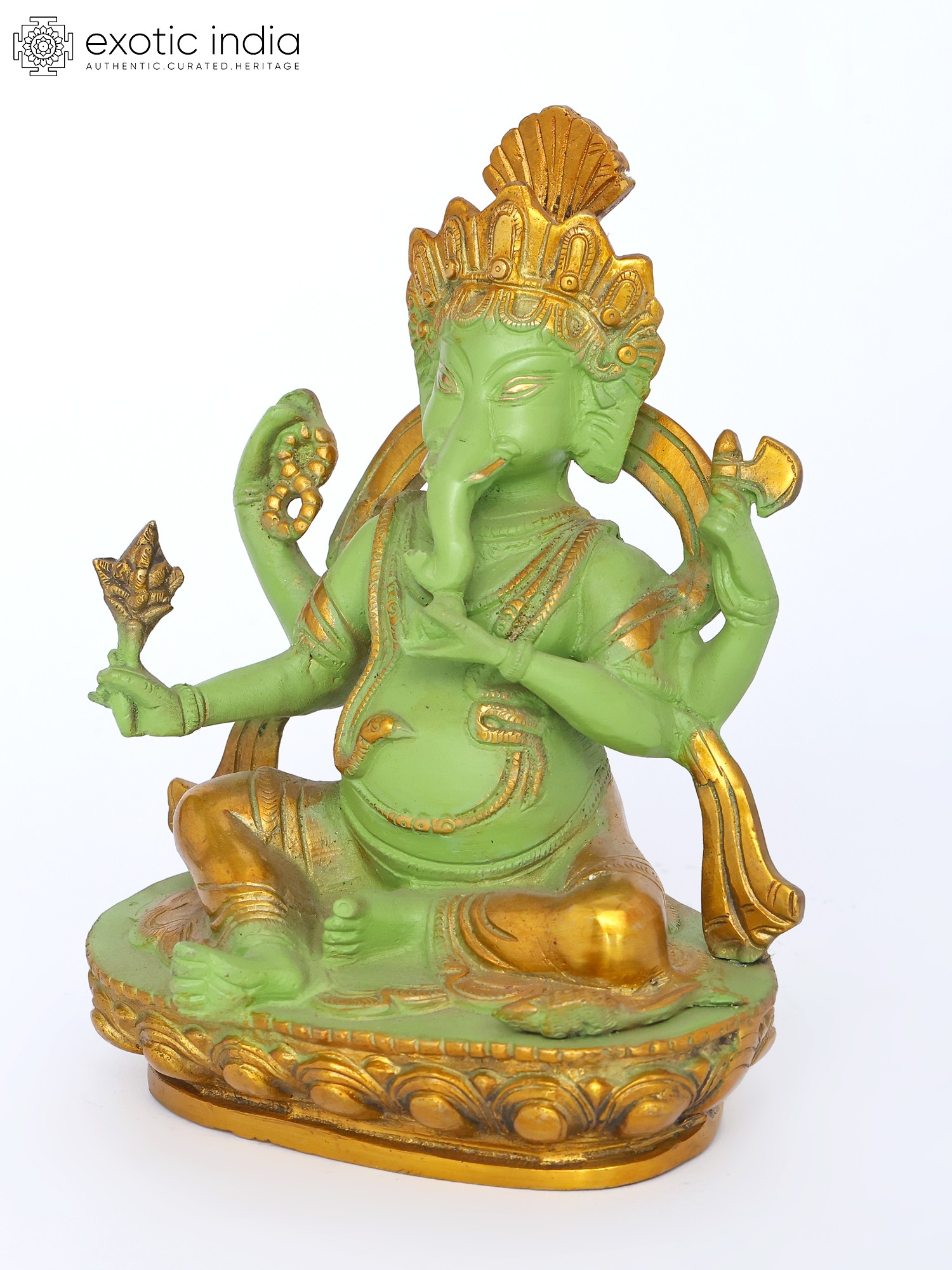 Chaturbhuja Lord Ganesha Brass Statue on Kirtimukha Throne
