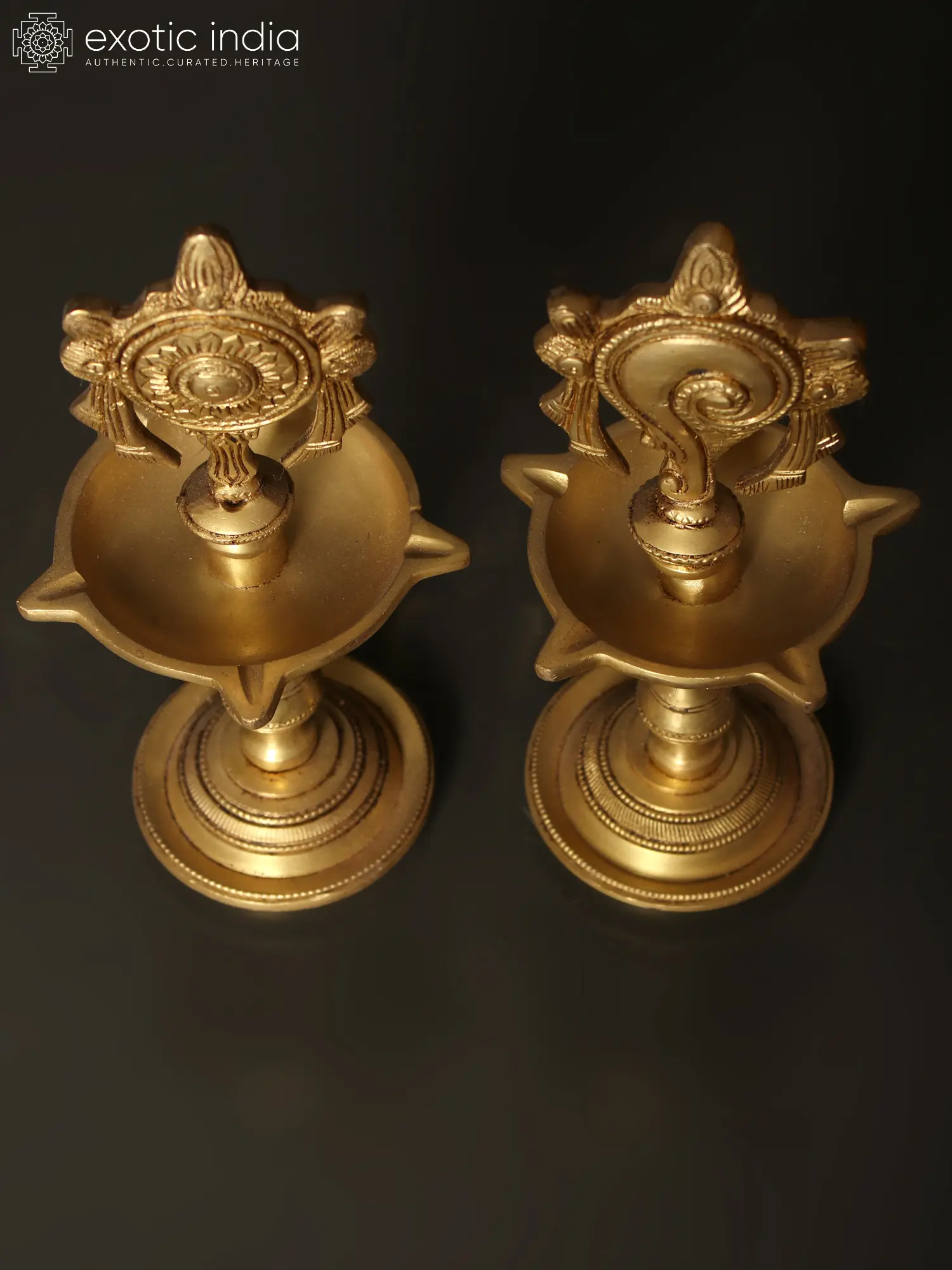 In worship, these symbols convey the cosmic power and transcendental nature of Vishnu, fostering spiritual awakening and aligning practitioners with the divine cosmic forces. This Pair of Multi Wicks Conch and Chakra Lamp in Brass is a medium that brings the auspicious energy of the symbols and infuses it with the warmth of light to bless the devotees with the pious energy that eradicates negative energies.