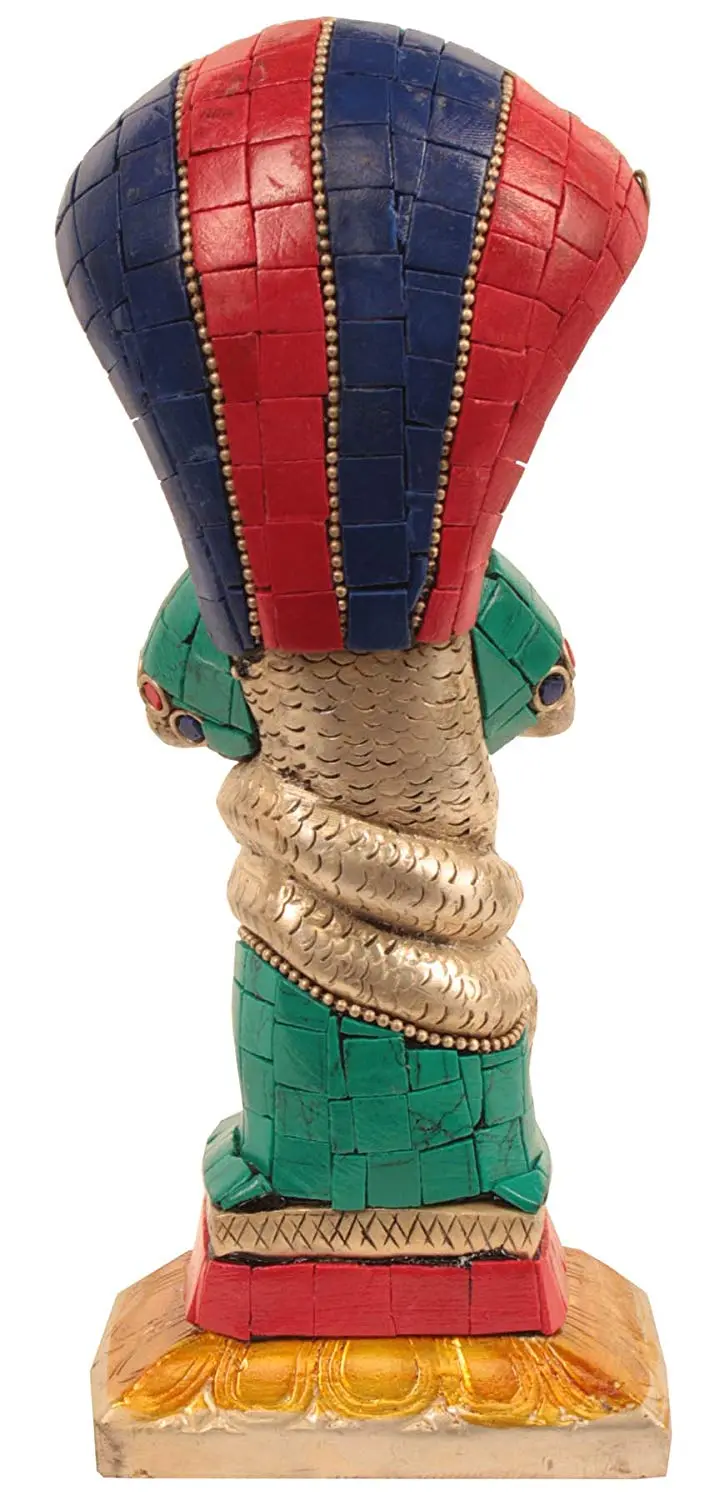 Each statue is individually handmade in India, ensuring a unique piece with its own character and soul. The use of brass lends a timeless quality, symbolizing purity and auspiciousness. The intricate inlay work, featuring richly colored stones and enamels, adds a luxurious dimension, highlighting the divine aura of the figure. The serpent's coils elegantly wrap around the sage's body, symbolizing the mastery of primal forces and the unfolding of profound knowledge. This motif is deeply rooted in Indian spiritual traditions, where serpents are often associated with Kundalini energy, the powerful, dormant force believed to reside at the base of the spine, capable of awakening higher consciousness when awakened through practices like yoga. ––––––––––––––––––––